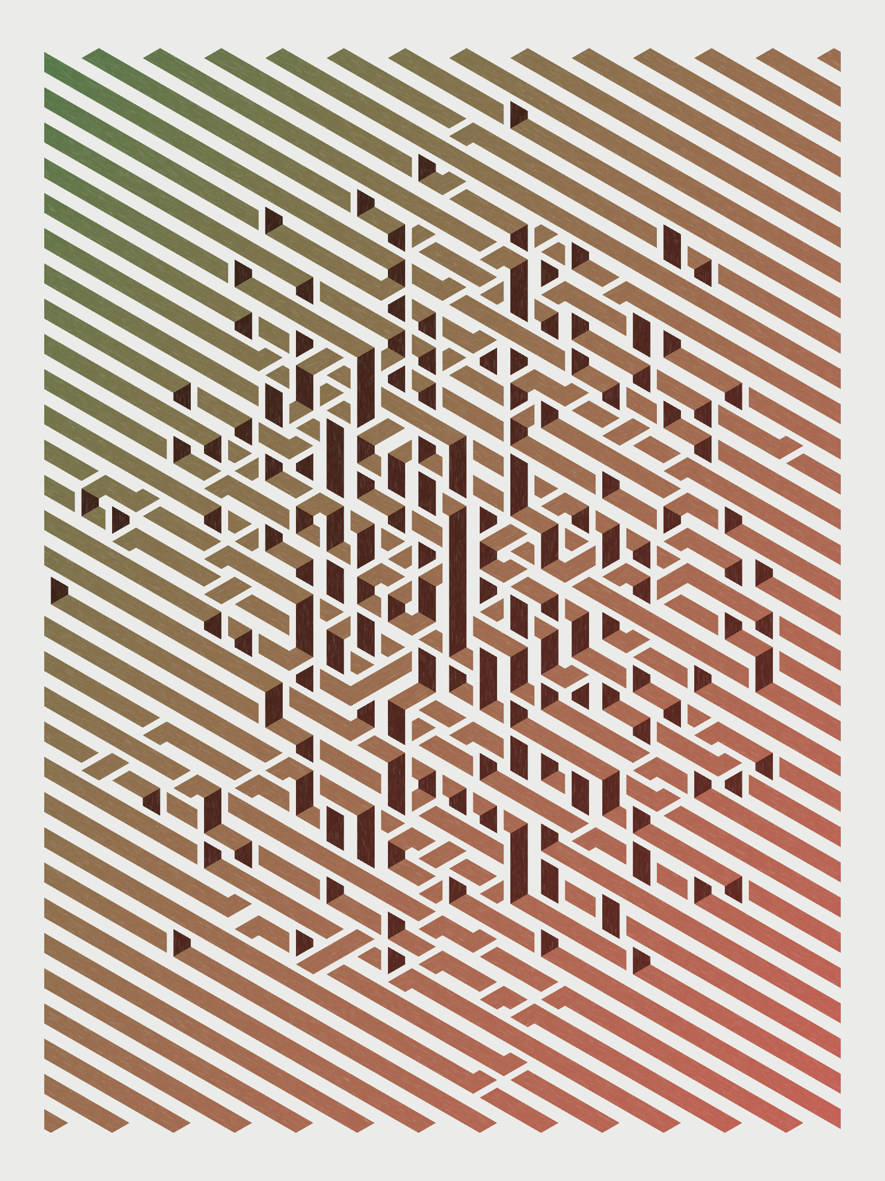 Lines are bent and shaded. There are no wrong turns. [Interaction in live view: press 1-7 or left/right arrow keys to see the stages of sketch construction: 1-grid, 2-divide, 3-tile, 4-bend, 5-shade, 6-color, 7-texture]