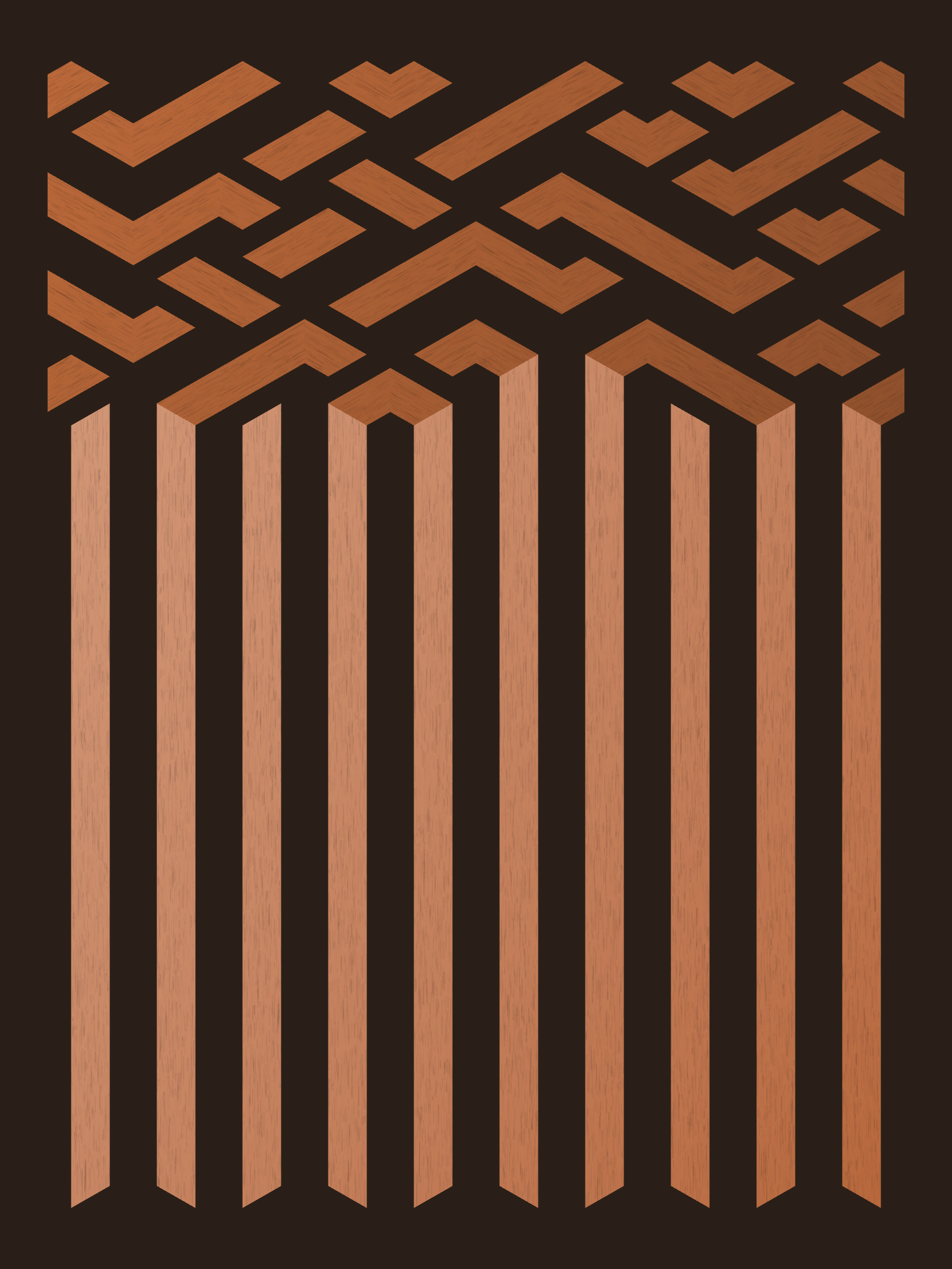 Lines are bent and shaded. There are no wrong turns. [Interaction in live view: press 1-7 or left/right arrow keys to see the stages of sketch construction: 1-grid, 2-divide, 3-tile, 4-bend, 5-shade, 6-color, 7-texture]