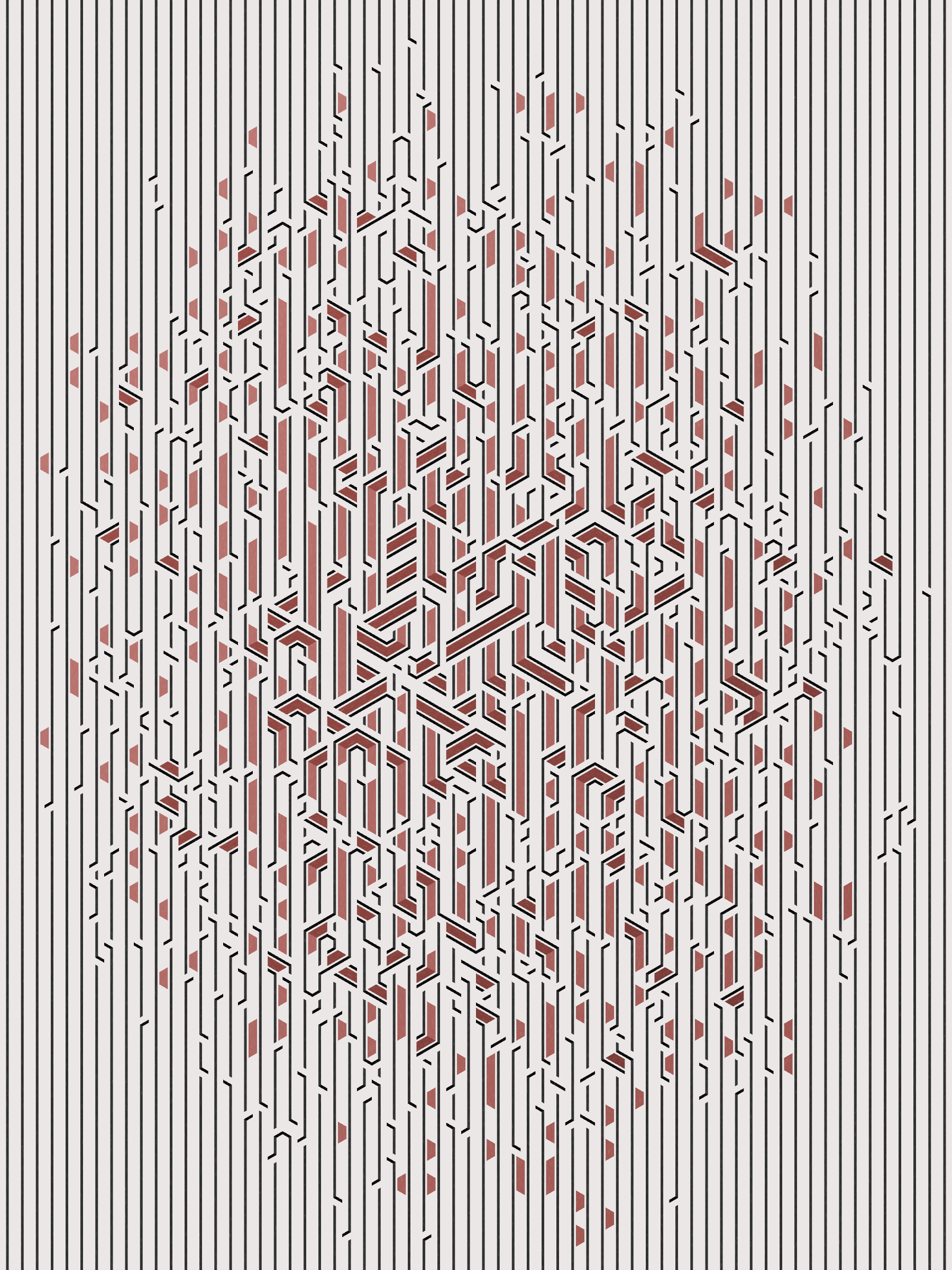 Lines are bent and shaded. There are no wrong turns. [Interaction in live view: press 1-7 or left/right arrow keys to see the stages of sketch construction: 1-grid, 2-divide, 3-tile, 4-bend, 5-shade, 6-color, 7-texture]