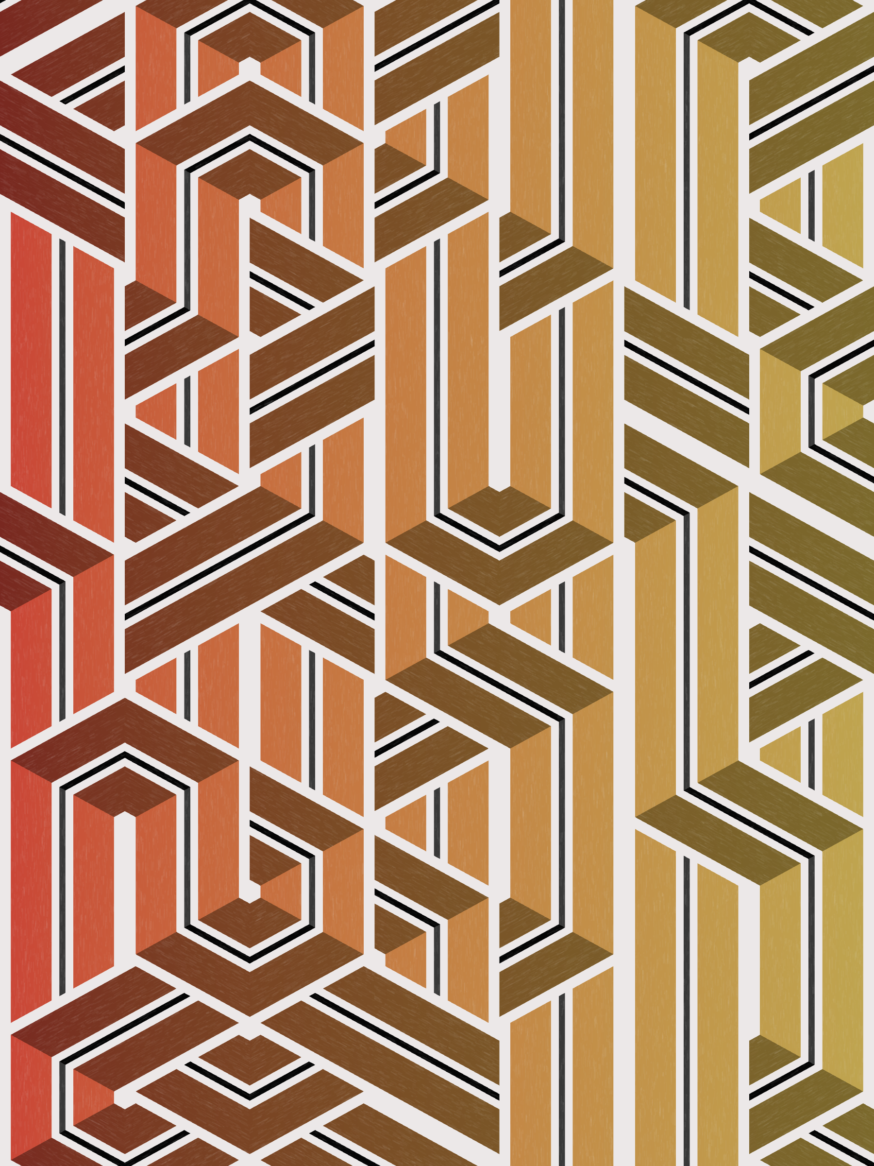 Lines are bent and shaded. There are no wrong turns. [Interaction in live view: press 1-7 or left/right arrow keys to see the stages of sketch construction: 1-grid, 2-divide, 3-tile, 4-bend, 5-shade, 6-color, 7-texture]