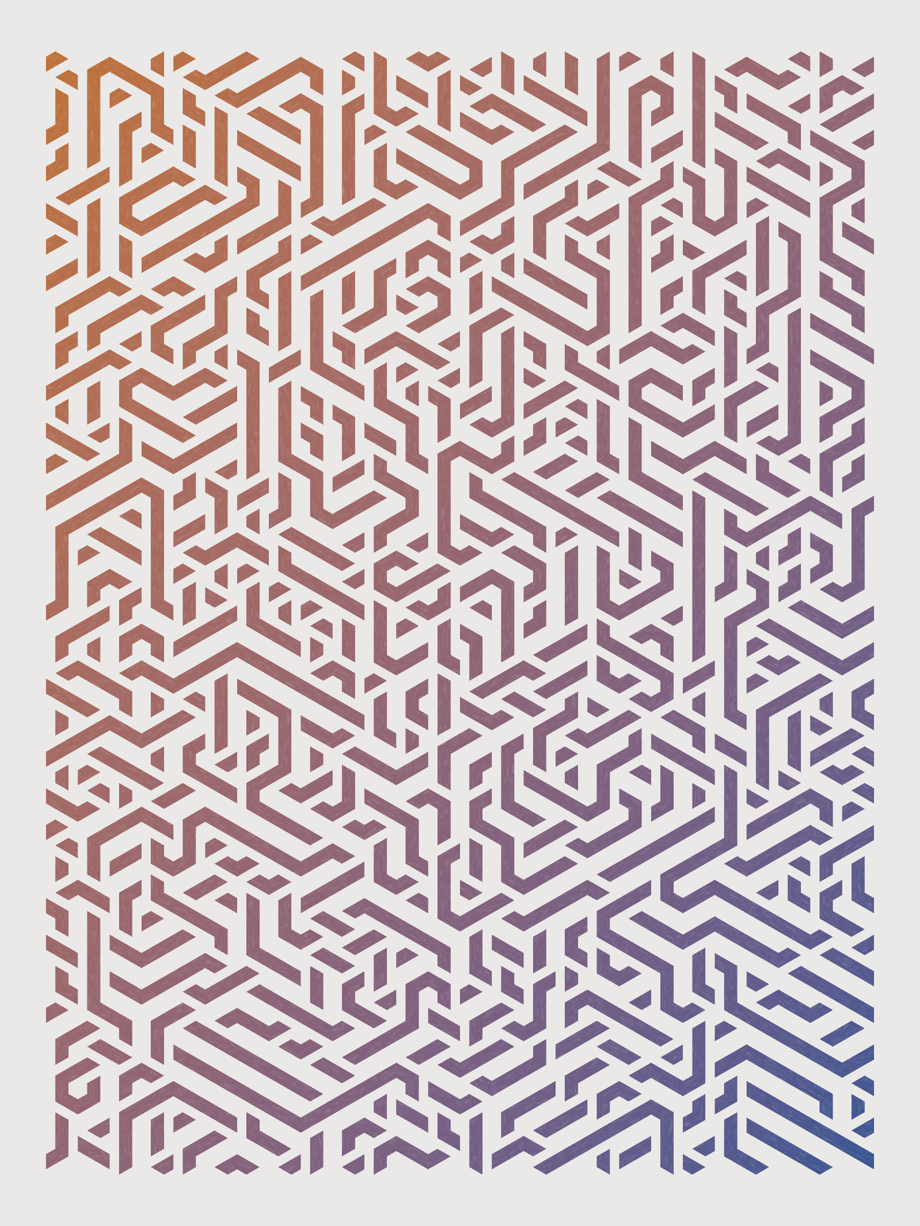 Lines are bent and shaded. There are no wrong turns. [Interaction in live view: press 1-7 or left/right arrow keys to see the stages of sketch construction: 1-grid, 2-divide, 3-tile, 4-bend, 5-shade, 6-color, 7-texture]