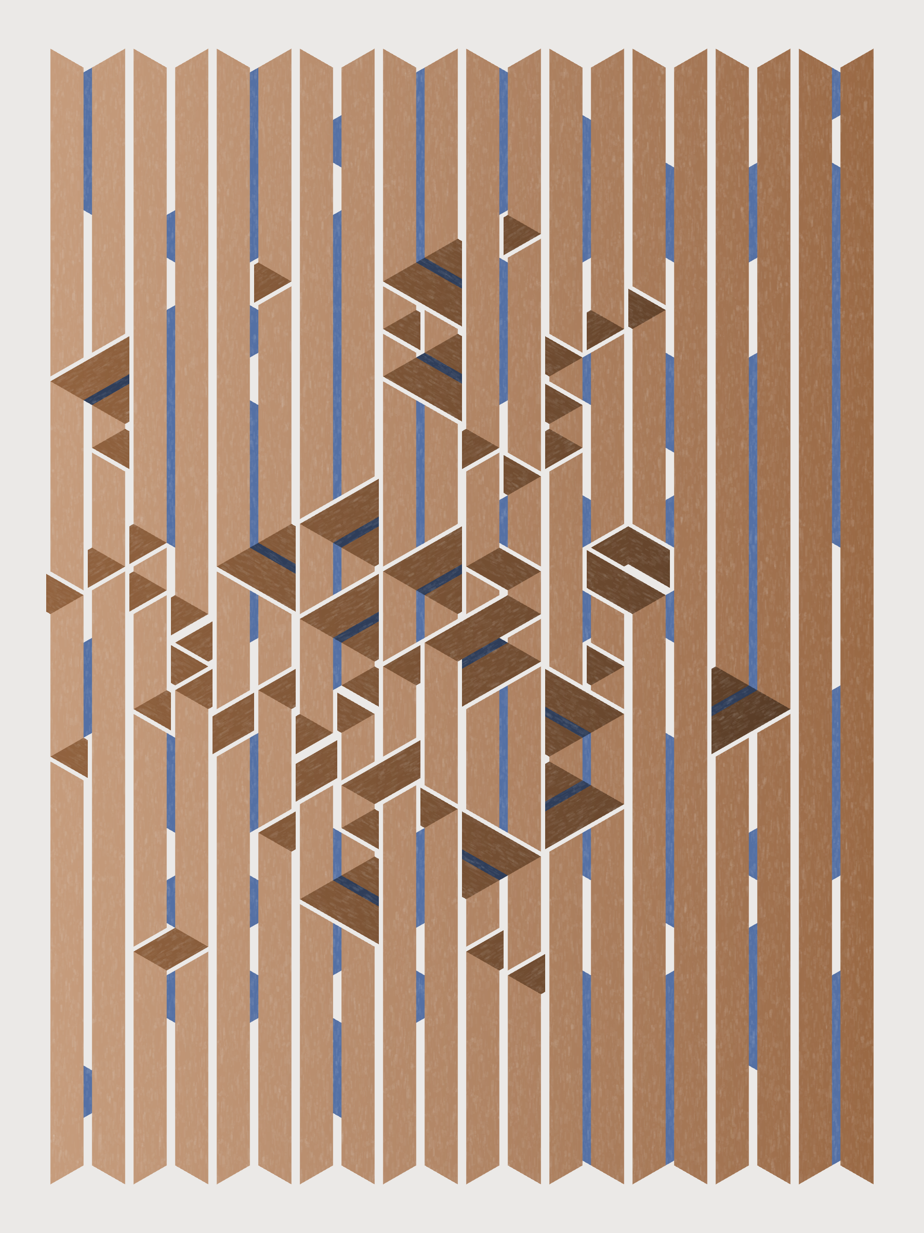 Lines are bent and shaded. There are no wrong turns. [Interaction in live view: press 1-7 or left/right arrow keys to see the stages of sketch construction: 1-grid, 2-divide, 3-tile, 4-bend, 5-shade, 6-color, 7-texture]