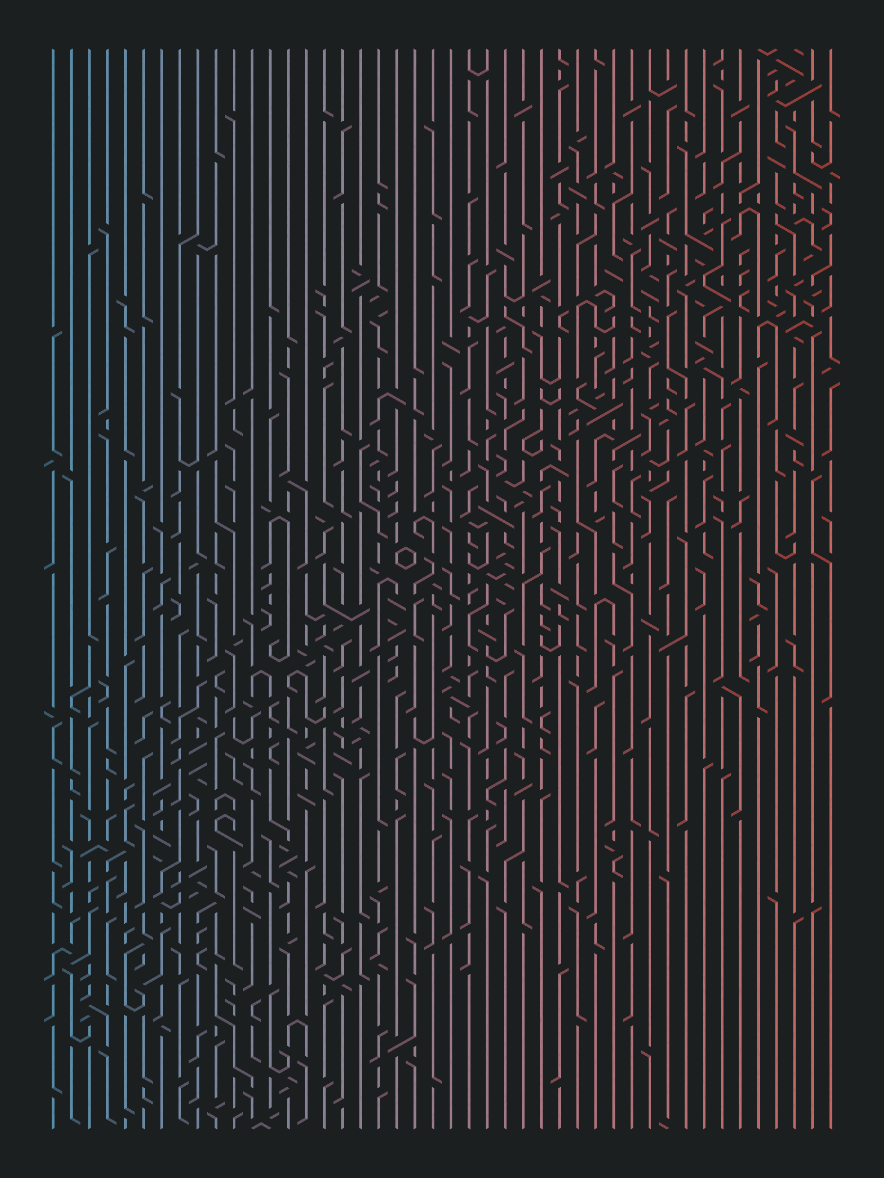 Lines are bent and shaded. There are no wrong turns. [Interaction in live view: press 1-7 or left/right arrow keys to see the stages of sketch construction: 1-grid, 2-divide, 3-tile, 4-bend, 5-shade, 6-color, 7-texture]
