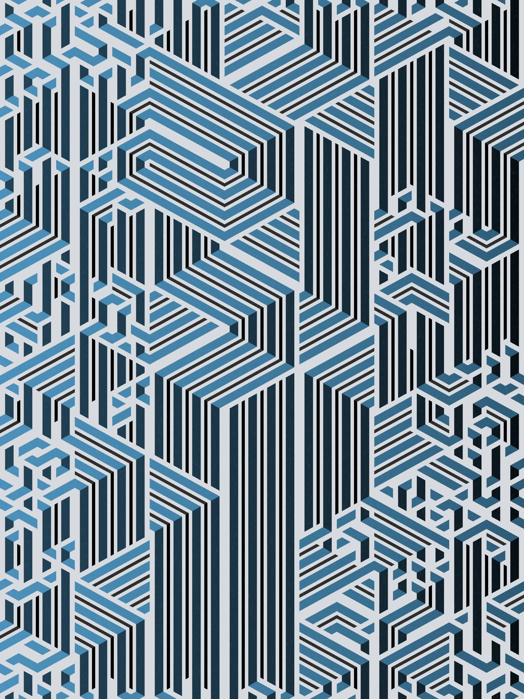 Lines are bent and shaded. There are no wrong turns. [Interaction in live view: press 1-7 or left/right arrow keys to see the stages of sketch construction: 1-grid, 2-divide, 3-tile, 4-bend, 5-shade, 6-color, 7-texture]