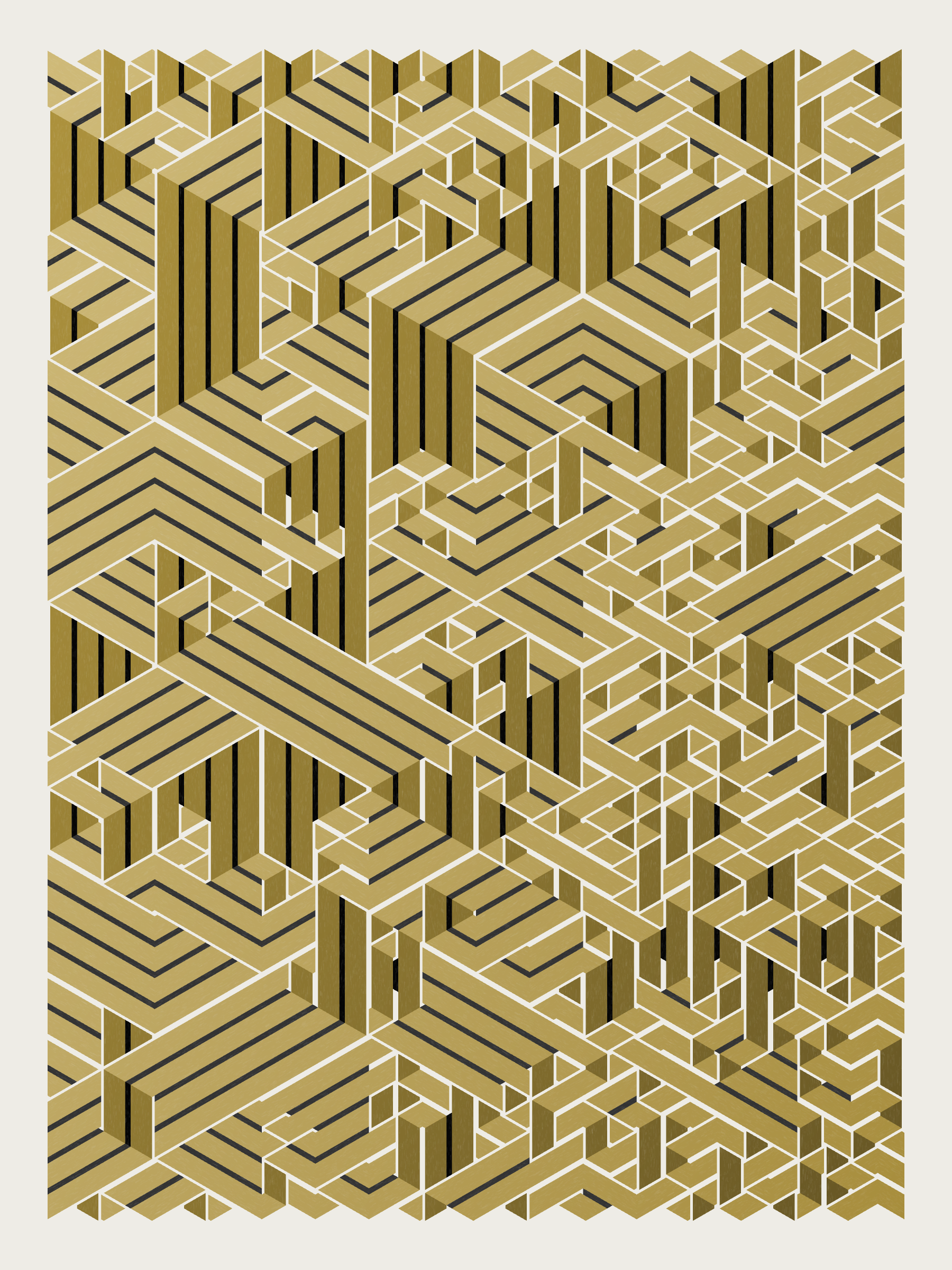 Lines are bent and shaded. There are no wrong turns. [Interaction in live view: press 1-7 or left/right arrow keys to see the stages of sketch construction: 1-grid, 2-divide, 3-tile, 4-bend, 5-shade, 6-color, 7-texture]