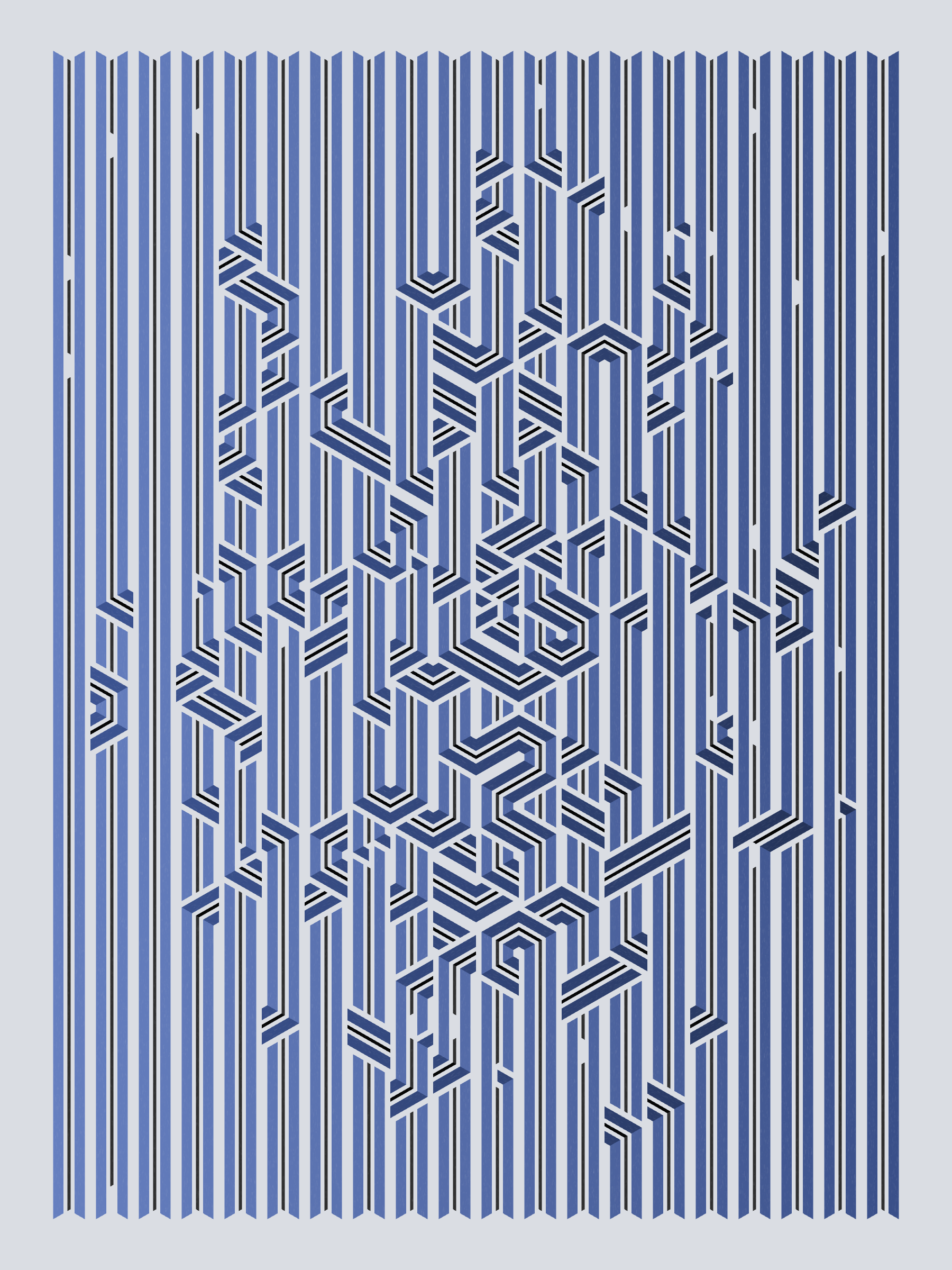 Lines are bent and shaded. There are no wrong turns. [Interaction in live view: press 1-7 or left/right arrow keys to see the stages of sketch construction: 1-grid, 2-divide, 3-tile, 4-bend, 5-shade, 6-color, 7-texture]