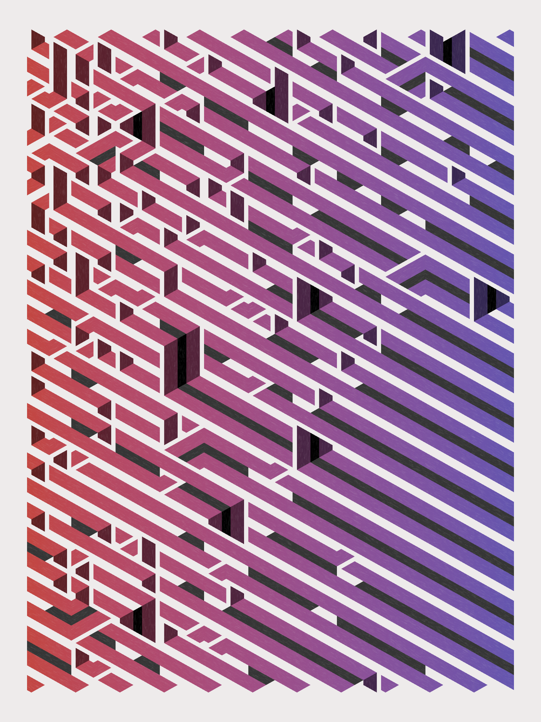 Lines are bent and shaded. There are no wrong turns. [Interaction in live view: press 1-7 or left/right arrow keys to see the stages of sketch construction: 1-grid, 2-divide, 3-tile, 4-bend, 5-shade, 6-color, 7-texture]