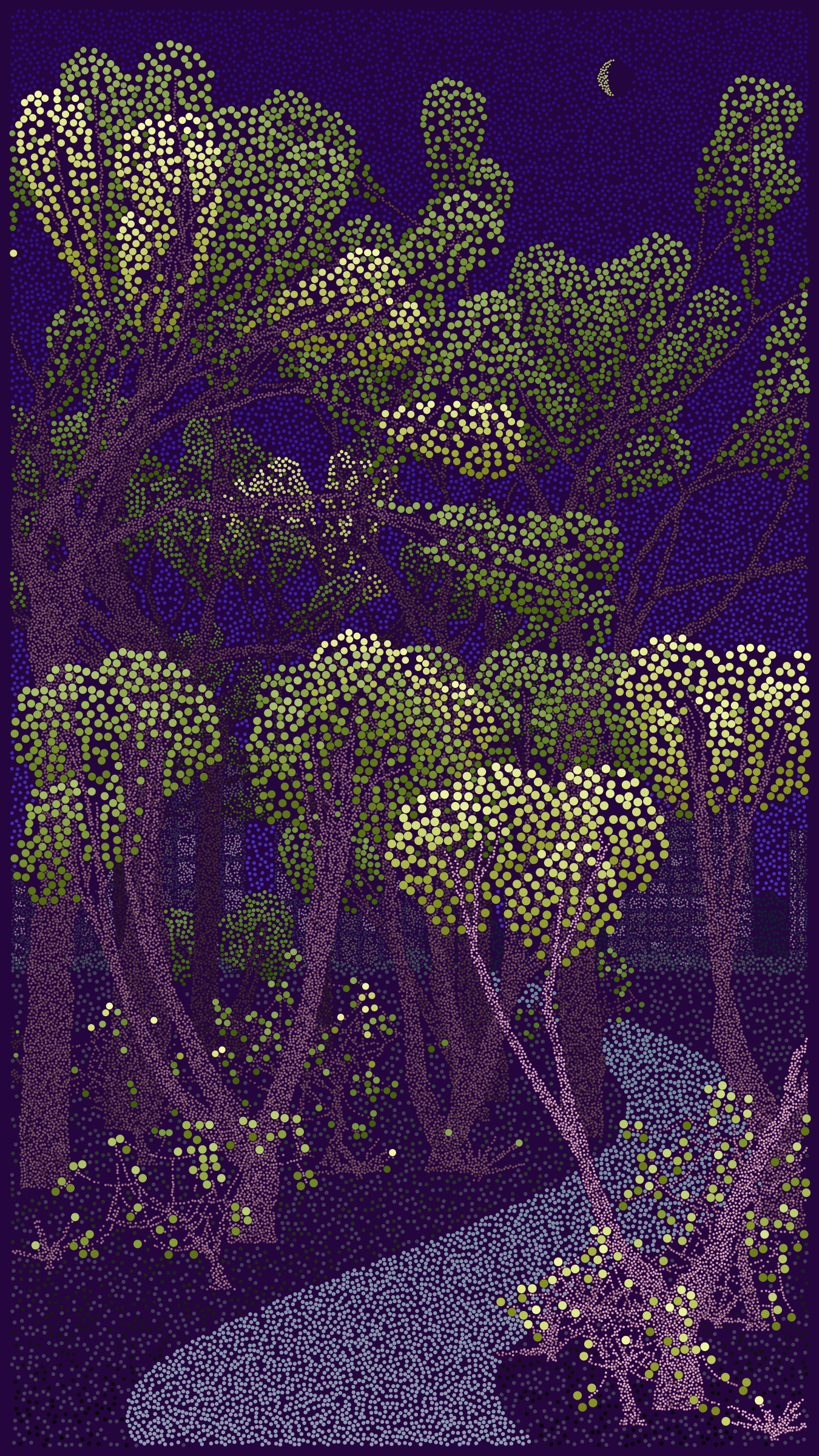 Bosque de Chapultepec is all about how computers can be used as a form of expression. It explores how a generative art algorithm can be used to make something beautiful that is unique to a particular place and time. Bosque de Chapultepec debuted at NFT ART CDMX in 2022, a four day celebration of generative art in Mexico City.