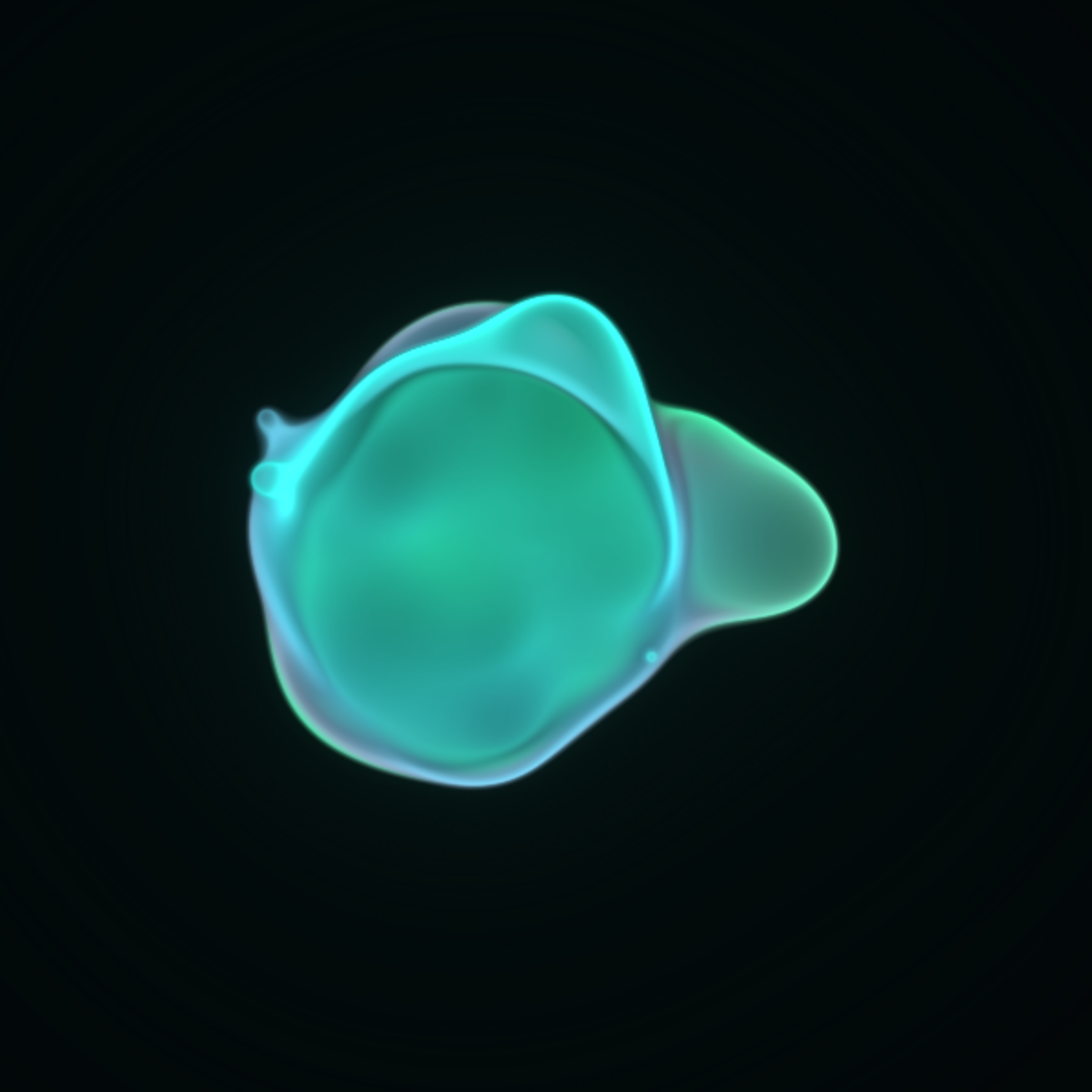 Translucent color bubbles playfully mix and morph to create organic and ephemeral blobby forms. [Shortcuts] spacebar: pause/resume, s: save screenshot, 1→5: high→low resolution. If needed, please adjust resolution or window size for optimal performance.