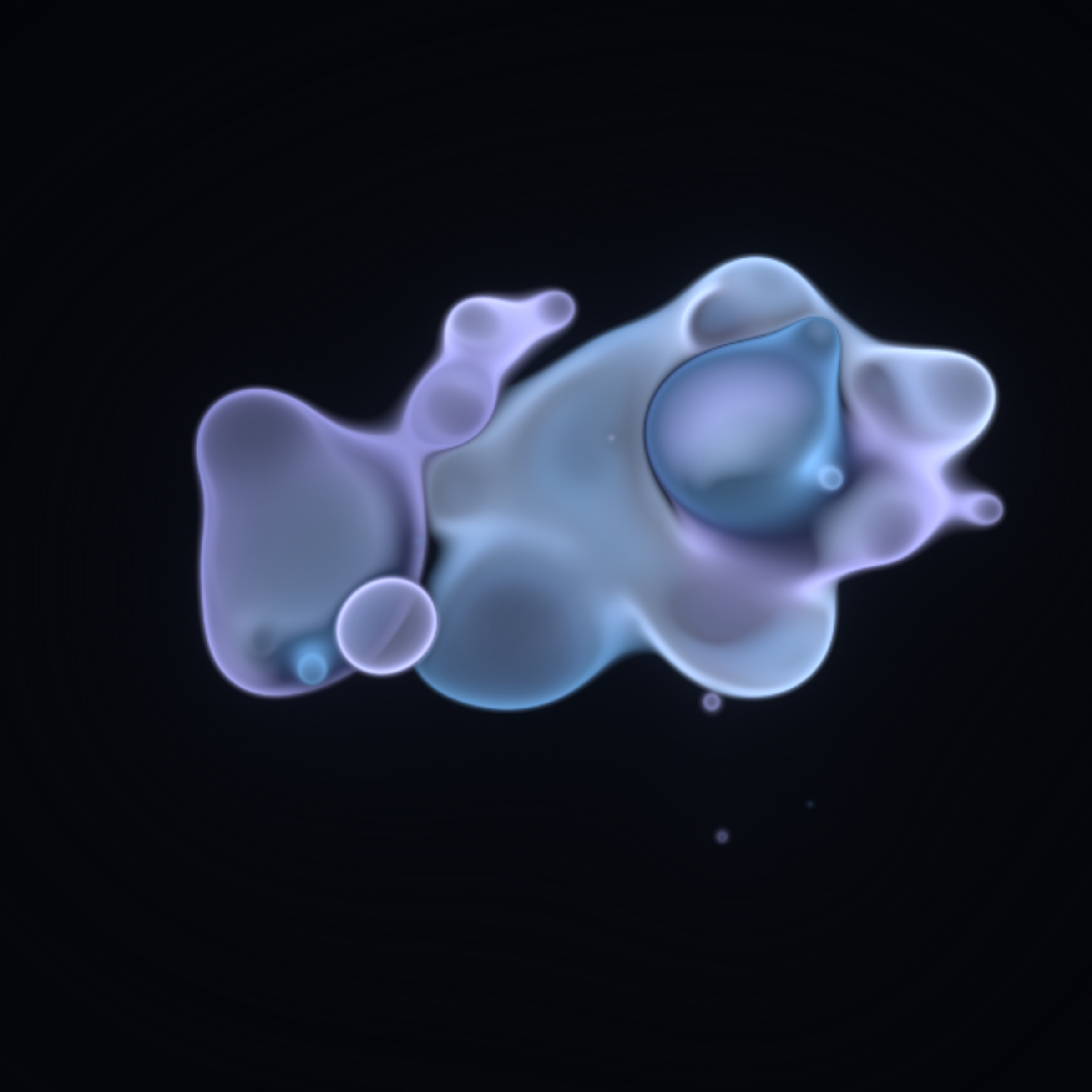 Translucent color bubbles playfully mix and morph to create organic and ephemeral blobby forms. [Shortcuts] spacebar: pause/resume, s: save screenshot, 1→5: high→low resolution. If needed, please adjust resolution or window size for optimal performance.