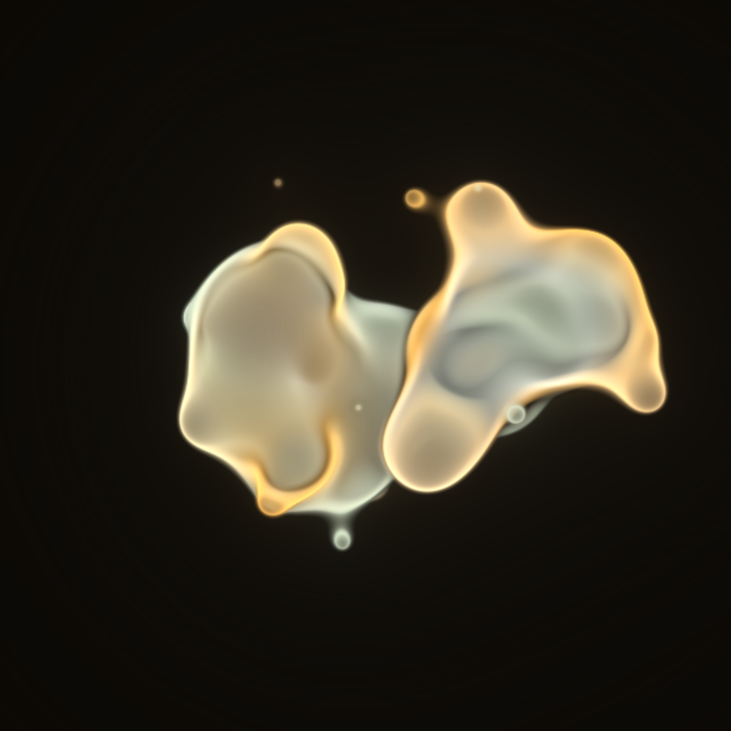 Translucent color bubbles playfully mix and morph to create organic and ephemeral blobby forms. [Shortcuts] spacebar: pause/resume, s: save screenshot, 1→5: high→low resolution. If needed, please adjust resolution or window size for optimal performance.