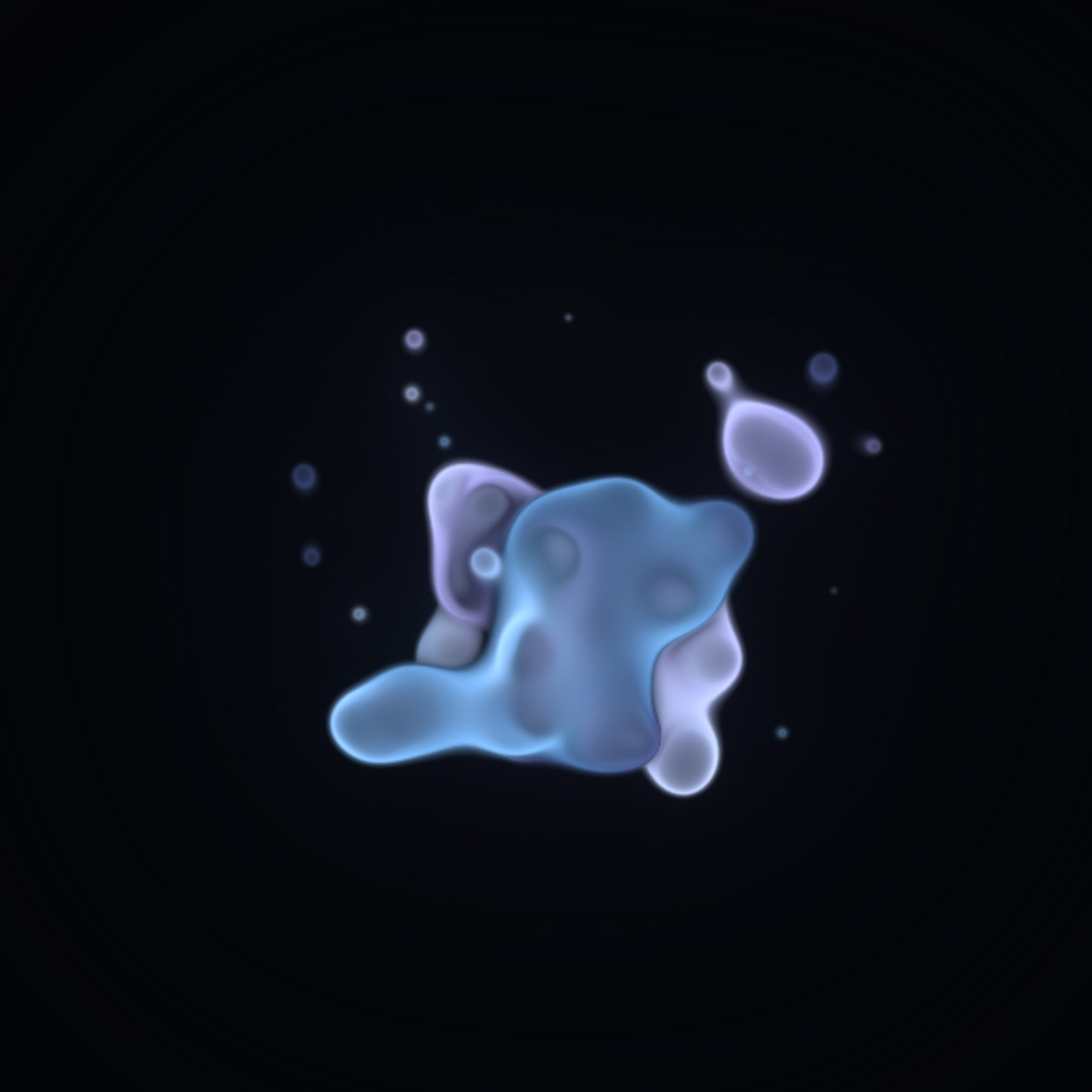 Translucent color bubbles playfully mix and morph to create organic and ephemeral blobby forms. [Shortcuts] spacebar: pause/resume, s: save screenshot, 1→5: high→low resolution. If needed, please adjust resolution or window size for optimal performance.