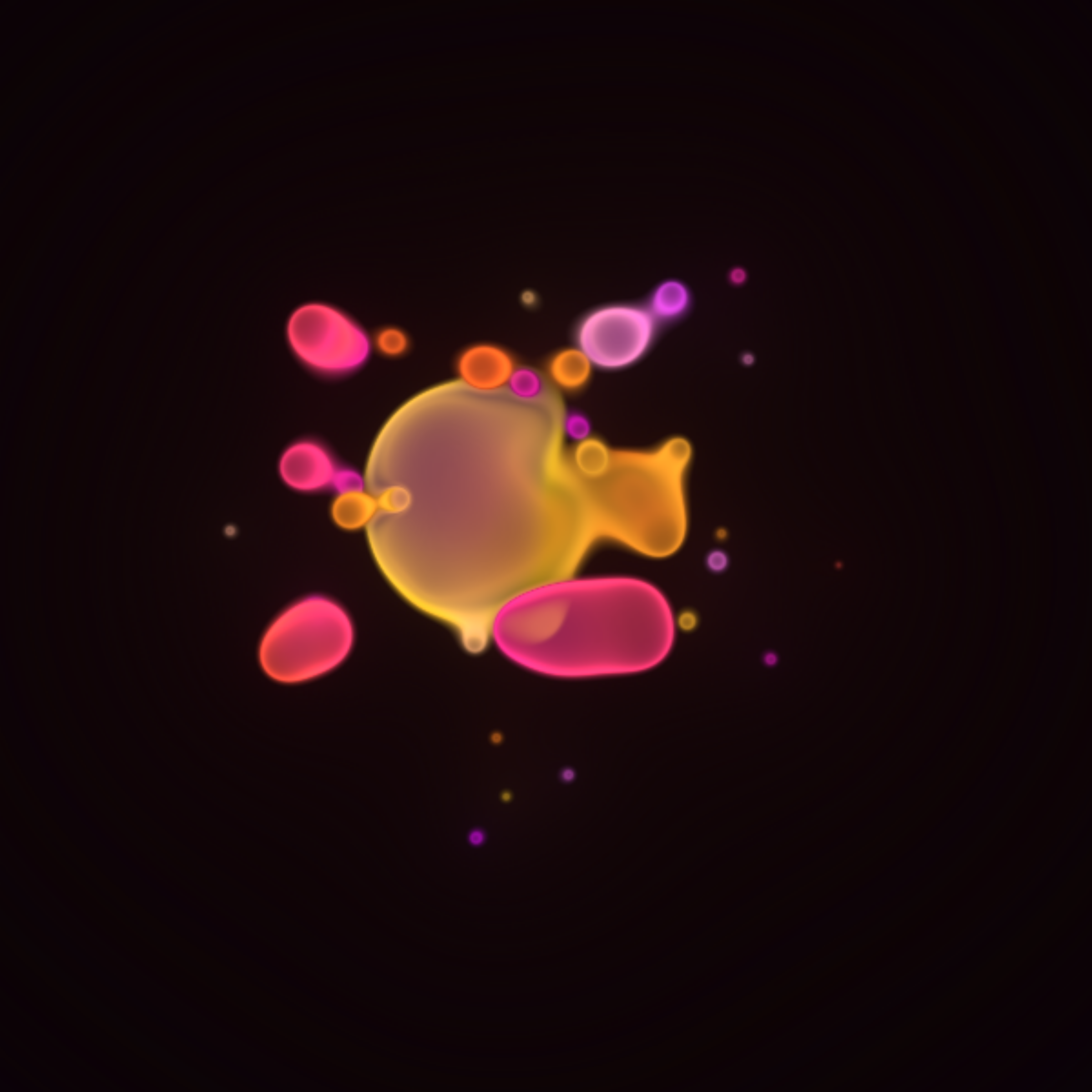 Translucent color bubbles playfully mix and morph to create organic and ephemeral blobby forms. [Shortcuts] spacebar: pause/resume, s: save screenshot, 1→5: high→low resolution. If needed, please adjust resolution or window size for optimal performance.
