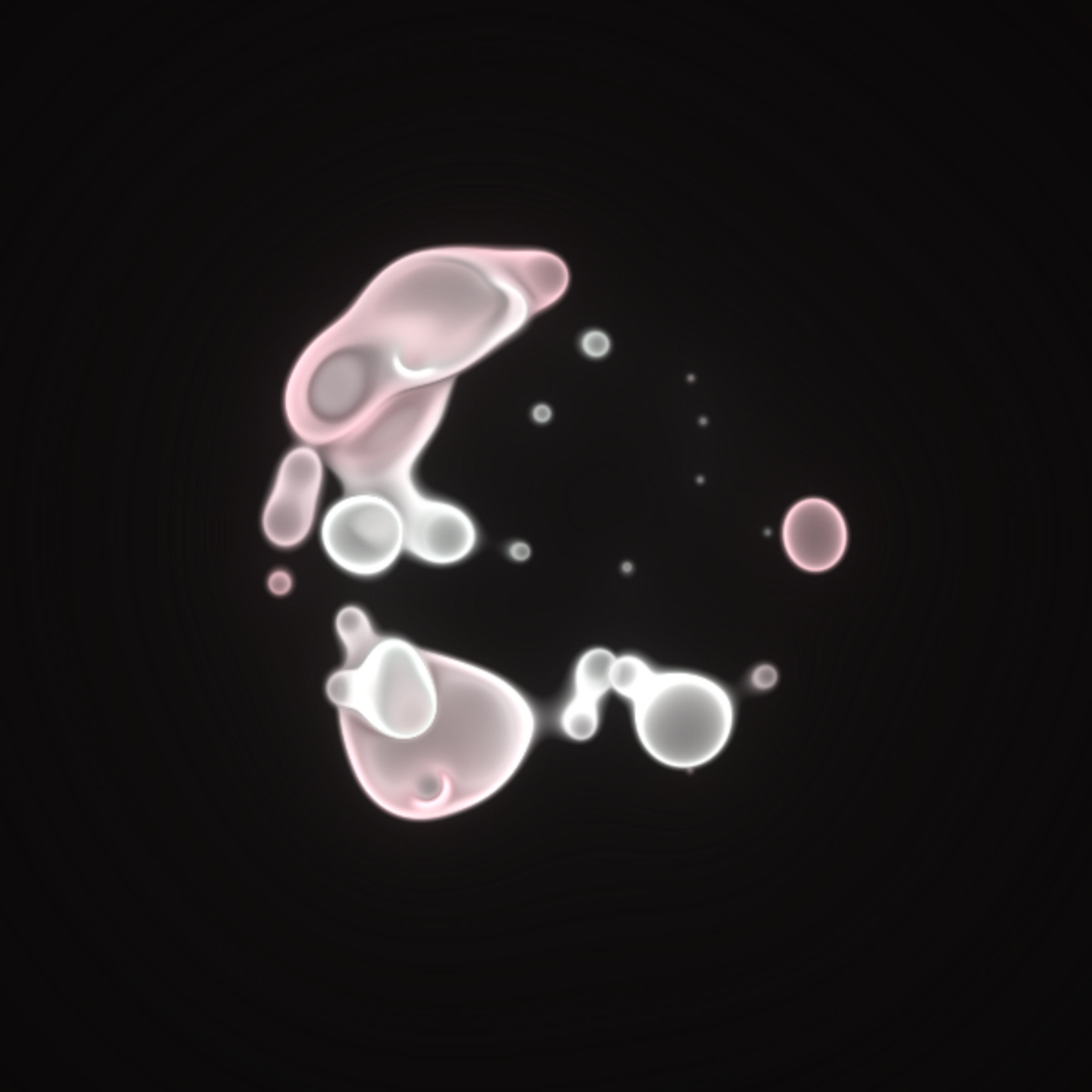Translucent color bubbles playfully mix and morph to create organic and ephemeral blobby forms. [Shortcuts] spacebar: pause/resume, s: save screenshot, 1→5: high→low resolution. If needed, please adjust resolution or window size for optimal performance.