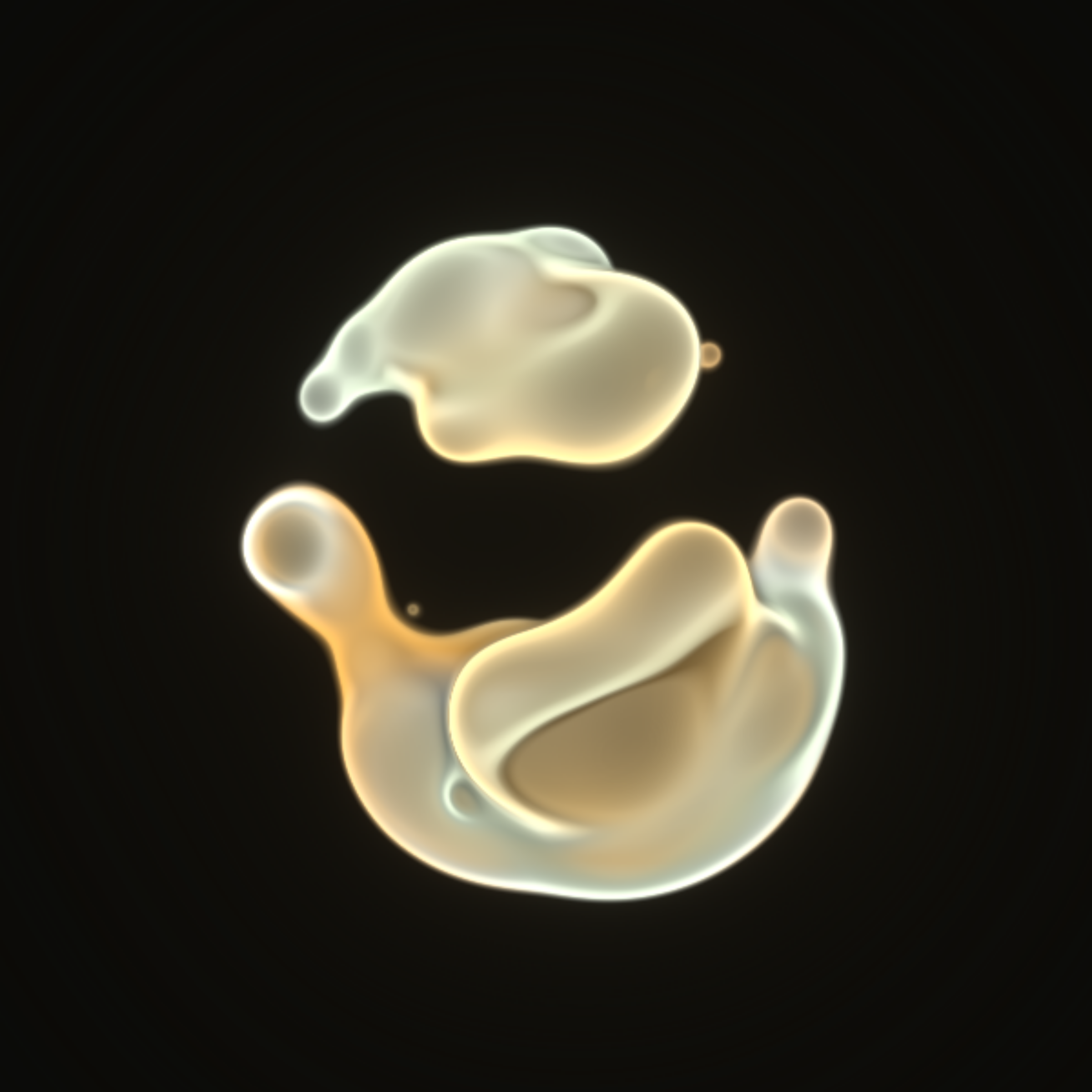 Translucent color bubbles playfully mix and morph to create organic and ephemeral blobby forms. [Shortcuts] spacebar: pause/resume, s: save screenshot, 1→5: high→low resolution. If needed, please adjust resolution or window size for optimal performance.