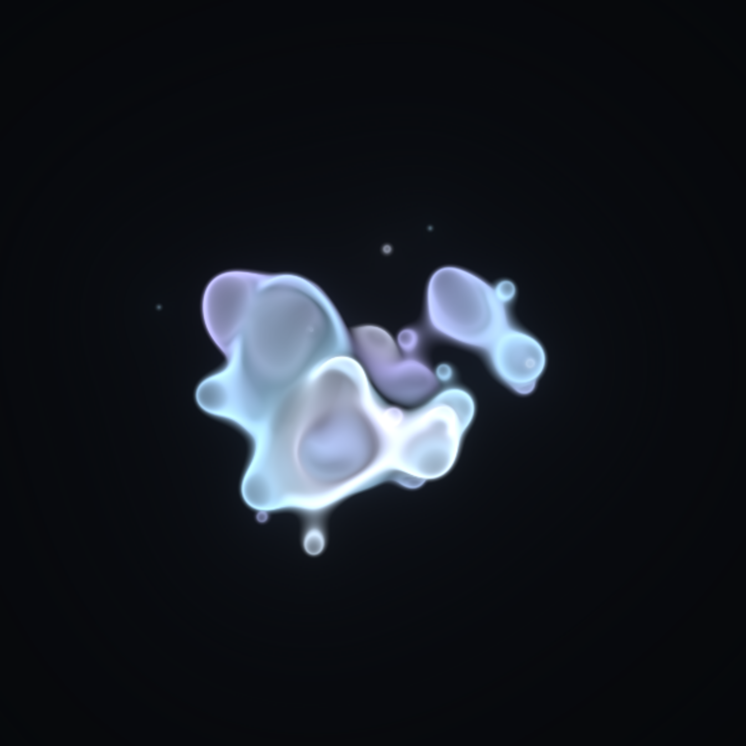 Translucent color bubbles playfully mix and morph to create organic and ephemeral blobby forms. [Shortcuts] spacebar: pause/resume, s: save screenshot, 1→5: high→low resolution. If needed, please adjust resolution or window size for optimal performance.