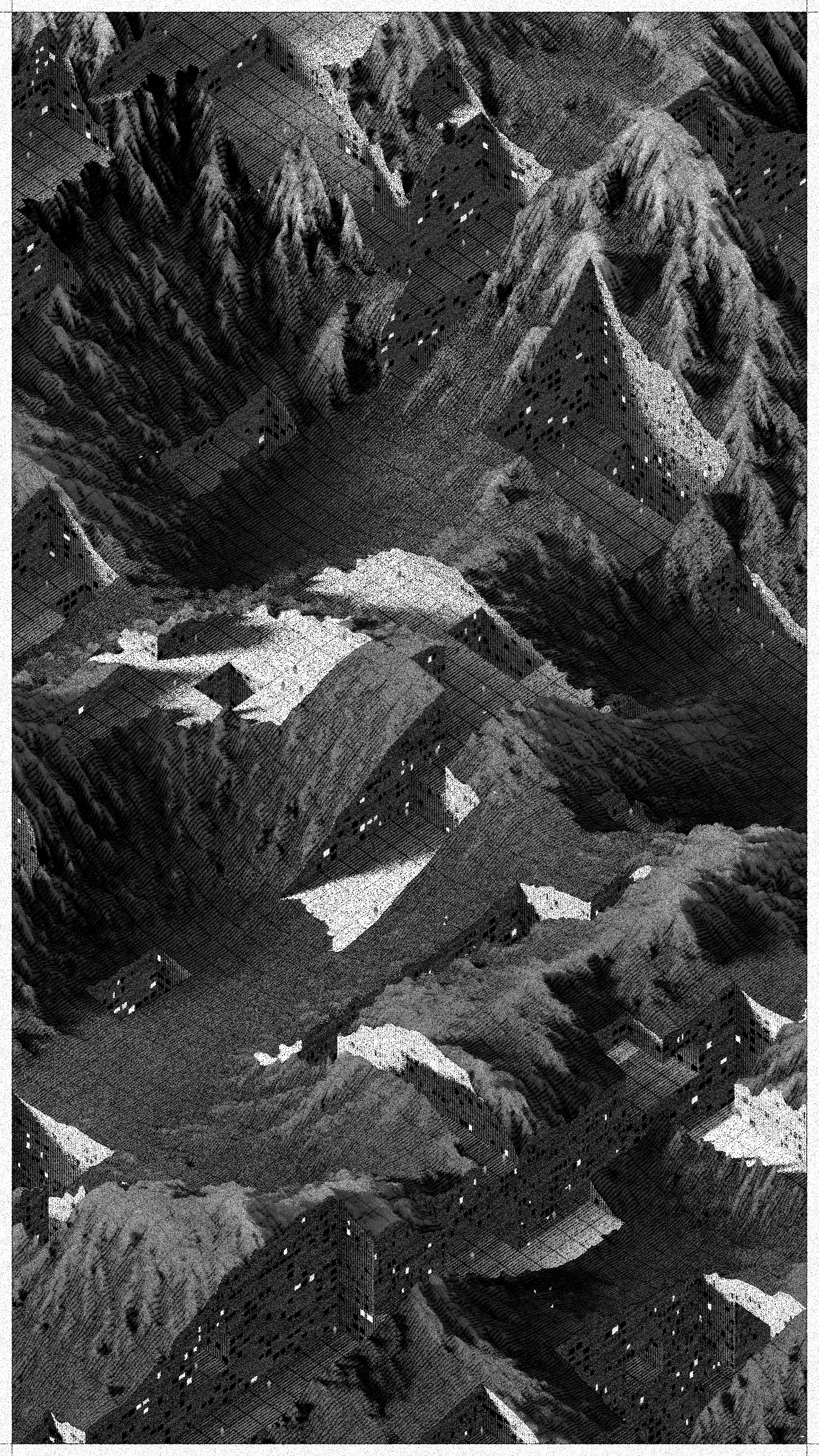Cantera is a project that brings these stories to a non-physical, generative space. It replaces atoms of stone and soil with digital bits. It draws landscapes inspired by the imagery of Basque stone quarries and iron mines and writes narratives about non-existent habitats where the boundaries between extraction, shelter, and natural forms become indistinct.