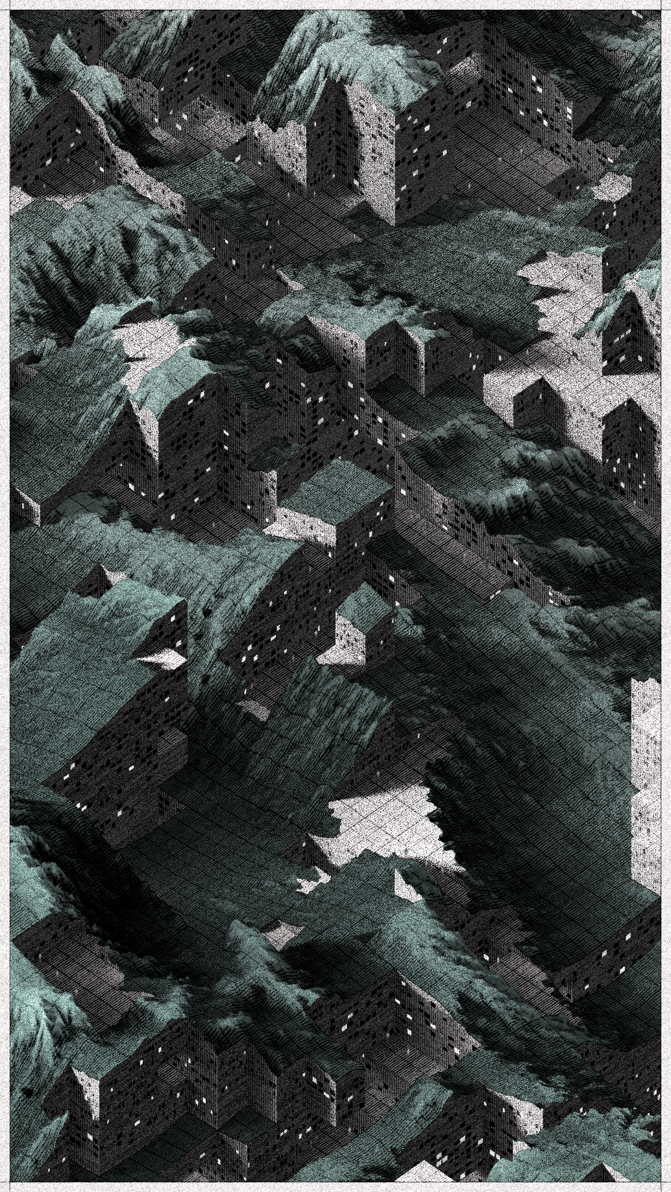 Cantera is a project that brings these stories to a non-physical, generative space. It replaces atoms of stone and soil with digital bits. It draws landscapes inspired by the imagery of Basque stone quarries and iron mines and writes narratives about non-existent habitats where the boundaries between extraction, shelter, and natural forms become indistinct.