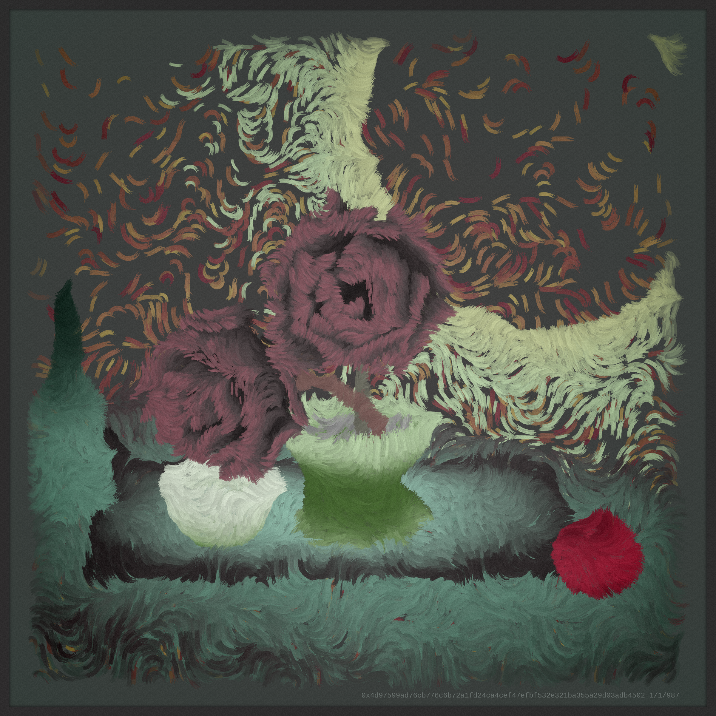 Chimera is a natural progression of still life. It is an old tradition in the very new medium of on-chain generative art, a movement that will have an enormous presence in the future. Chimera simultaneously reaches into the past while exploiting the capabilities of the present and seeks to represent a unique moment in time, a generation of art in between digital and physical realities, encapsulating where we came from and where we are going.