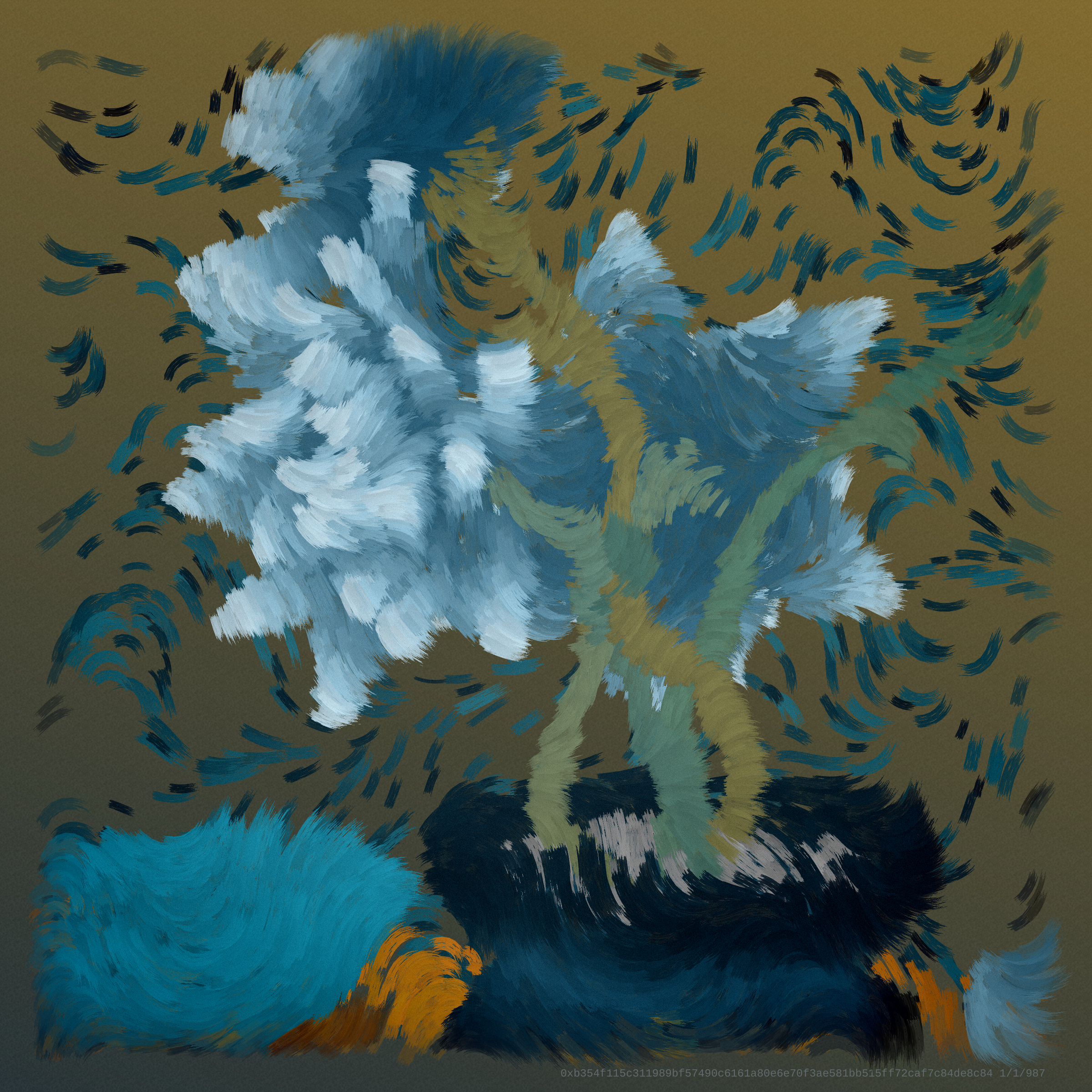 Chimera is a natural progression of still life. It is an old tradition in the very new medium of on-chain generative art, a movement that will have an enormous presence in the future. Chimera simultaneously reaches into the past while exploiting the capabilities of the present and seeks to represent a unique moment in time, a generation of art in between digital and physical realities, encapsulating where we came from and where we are going.