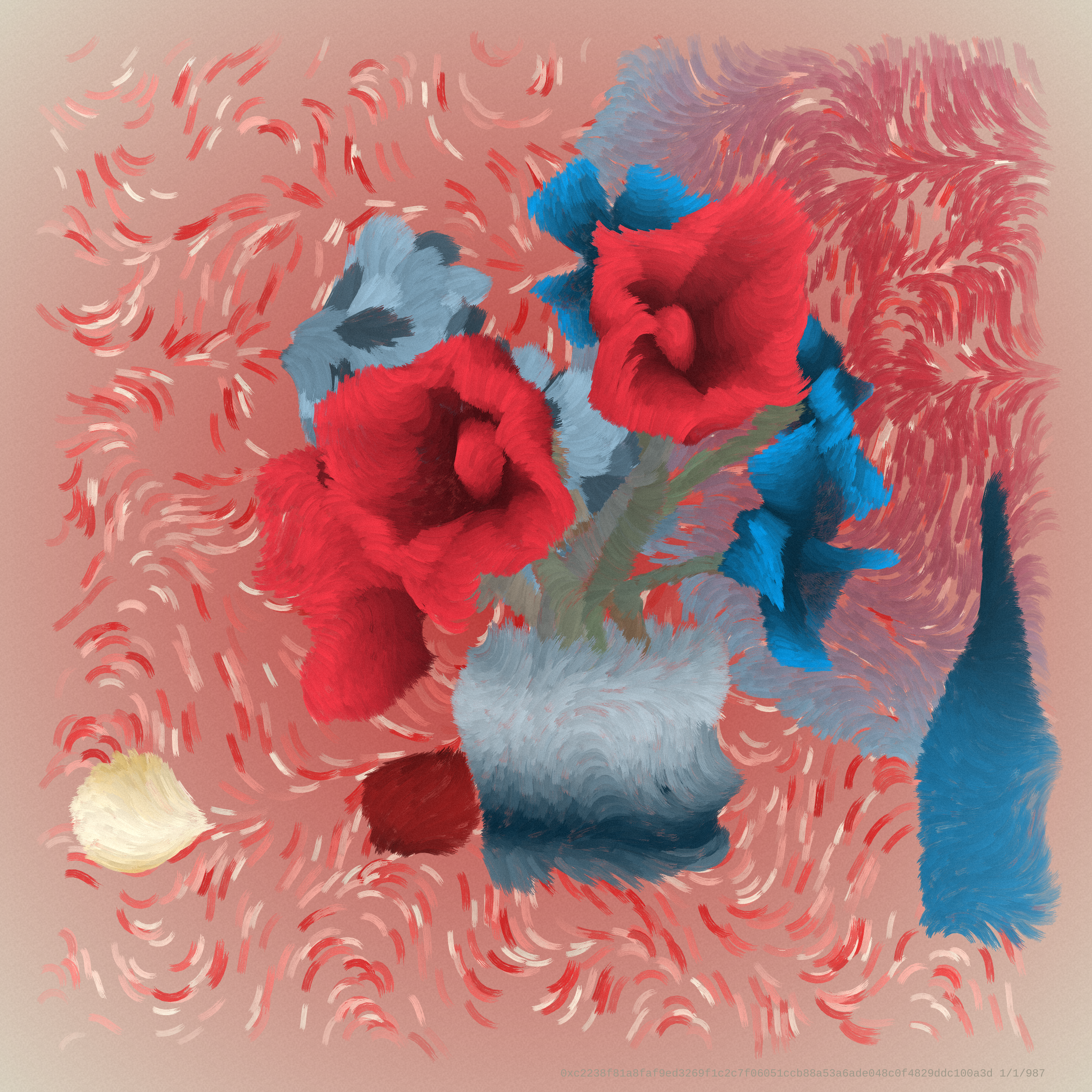 Chimera is a natural progression of still life. It is an old tradition in the very new medium of on-chain generative art, a movement that will have an enormous presence in the future. Chimera simultaneously reaches into the past while exploiting the capabilities of the present and seeks to represent a unique moment in time, a generation of art in between digital and physical realities, encapsulating where we came from and where we are going.