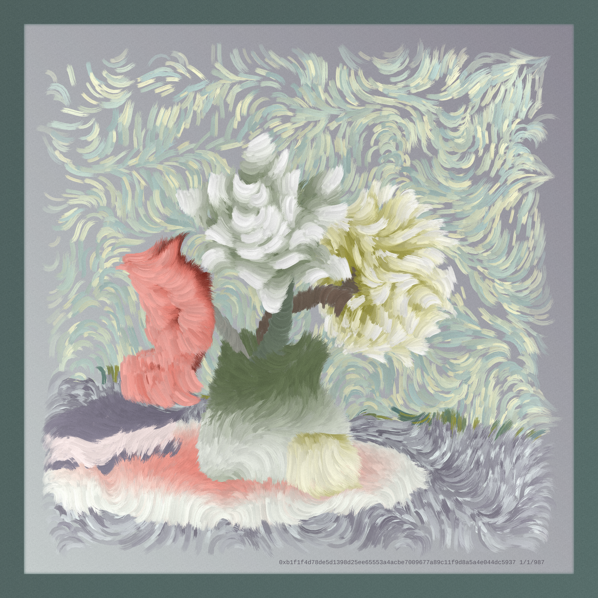 Chimera is a natural progression of still life. It is an old tradition in the very new medium of on-chain generative art, a movement that will have an enormous presence in the future. Chimera simultaneously reaches into the past while exploiting the capabilities of the present and seeks to represent a unique moment in time, a generation of art in between digital and physical realities, encapsulating where we came from and where we are going.
