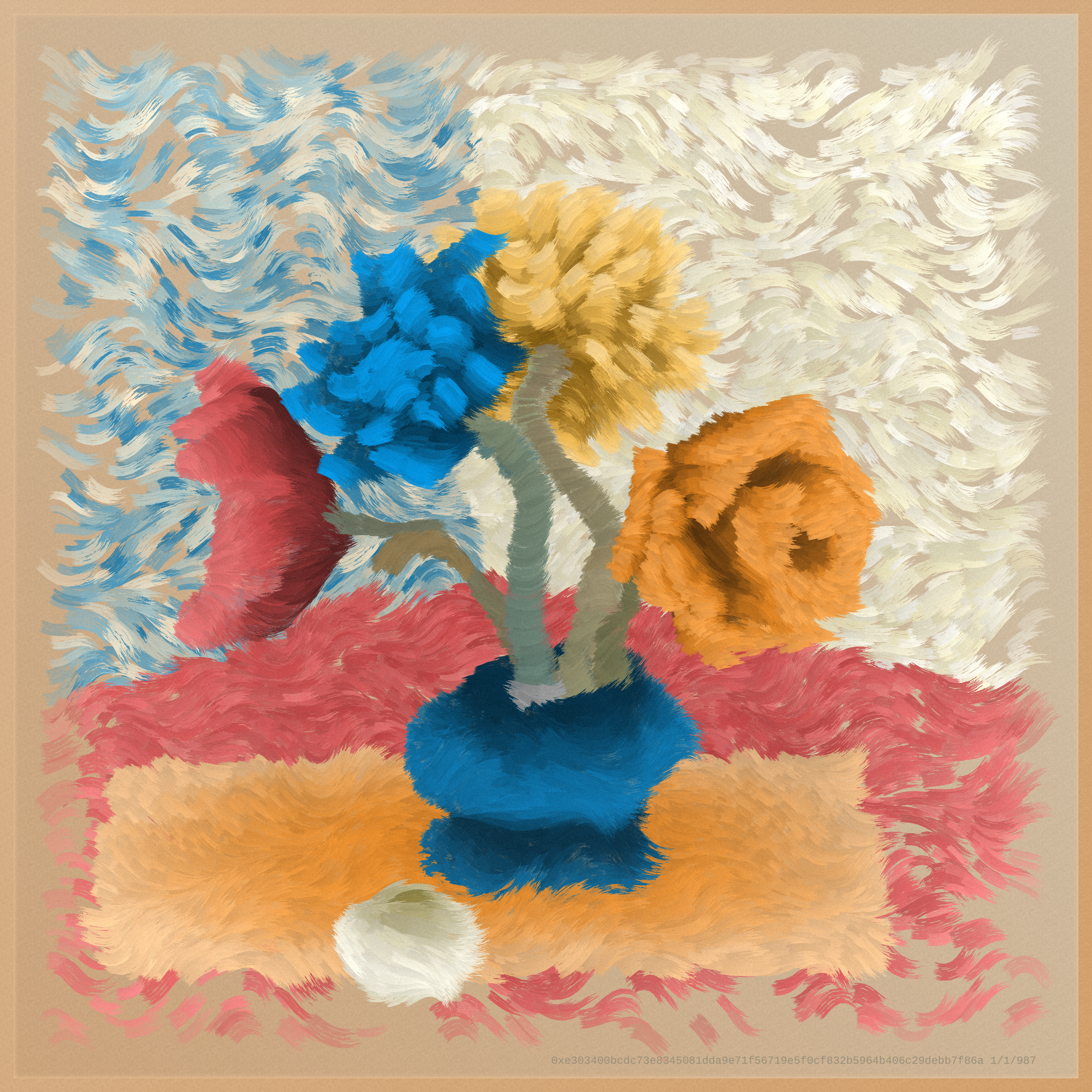 Chimera is a natural progression of still life. It is an old tradition in the very new medium of on-chain generative art, a movement that will have an enormous presence in the future. Chimera simultaneously reaches into the past while exploiting the capabilities of the present and seeks to represent a unique moment in time, a generation of art in between digital and physical realities, encapsulating where we came from and where we are going.