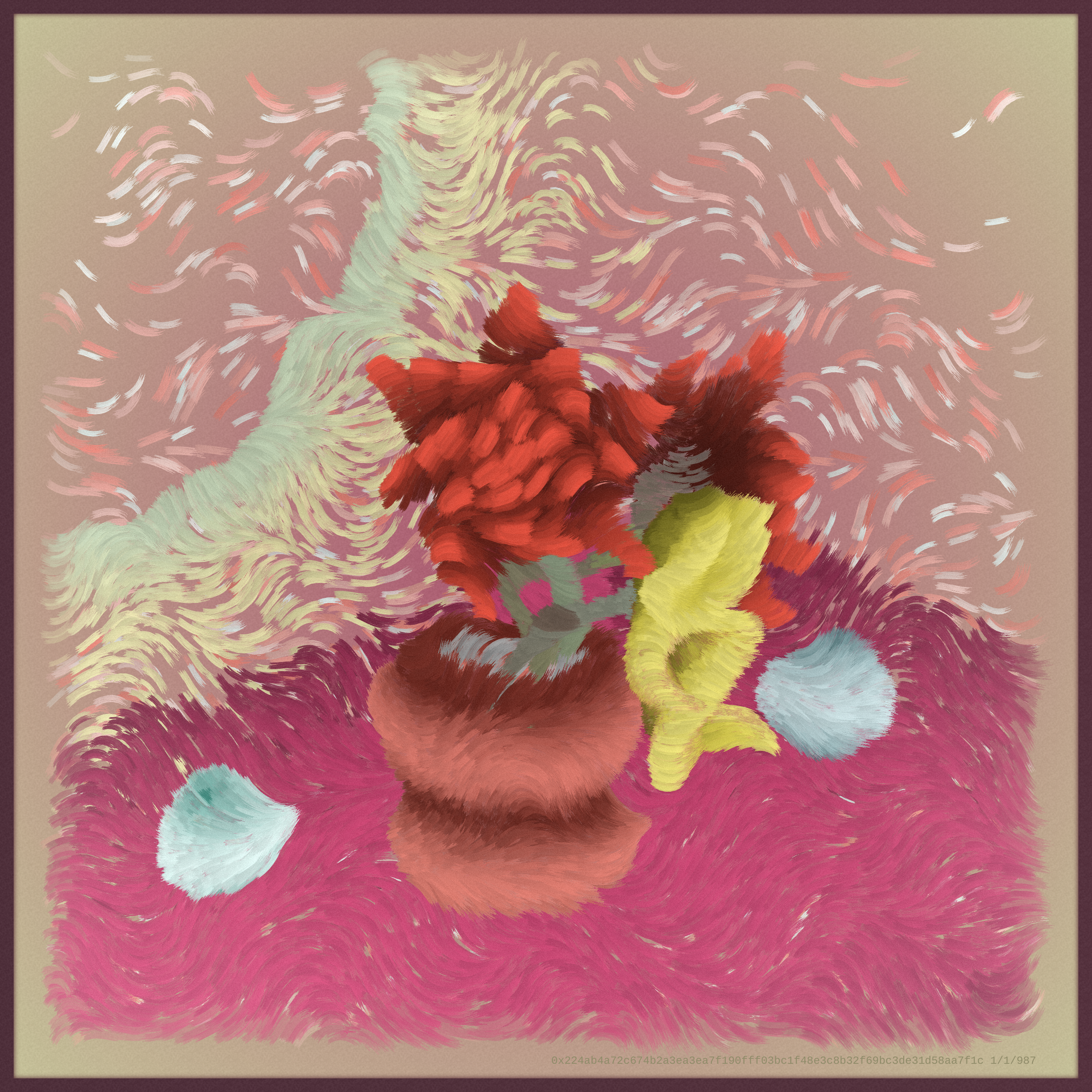 Chimera is a natural progression of still life. It is an old tradition in the very new medium of on-chain generative art, a movement that will have an enormous presence in the future. Chimera simultaneously reaches into the past while exploiting the capabilities of the present and seeks to represent a unique moment in time, a generation of art in between digital and physical realities, encapsulating where we came from and where we are going.