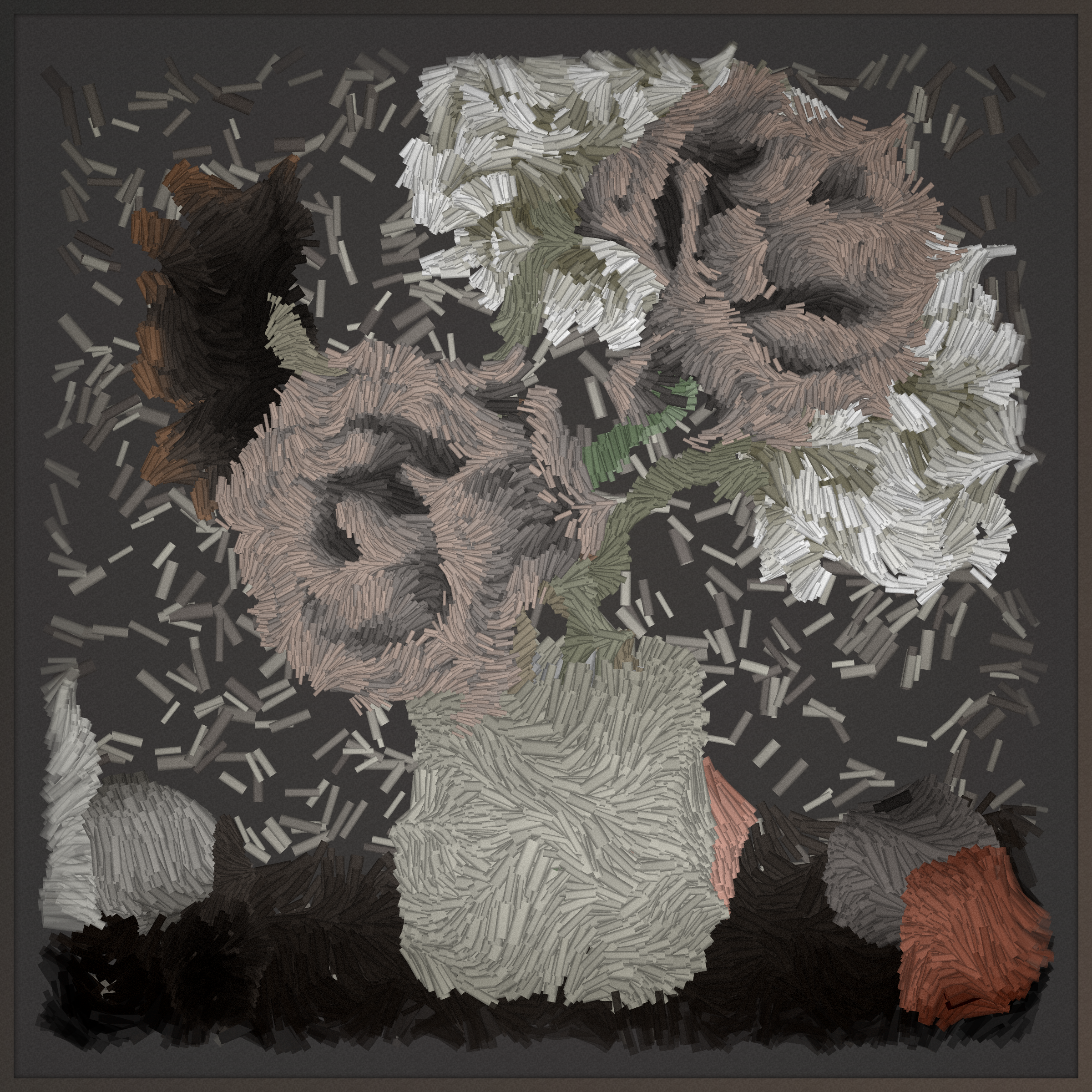 Chimera is a natural progression of still life. It is an old tradition in the very new medium of on-chain generative art, a movement that will have an enormous presence in the future. Chimera simultaneously reaches into the past while exploiting the capabilities of the present and seeks to represent a unique moment in time, a generation of art in between digital and physical realities, encapsulating where we came from and where we are going.
