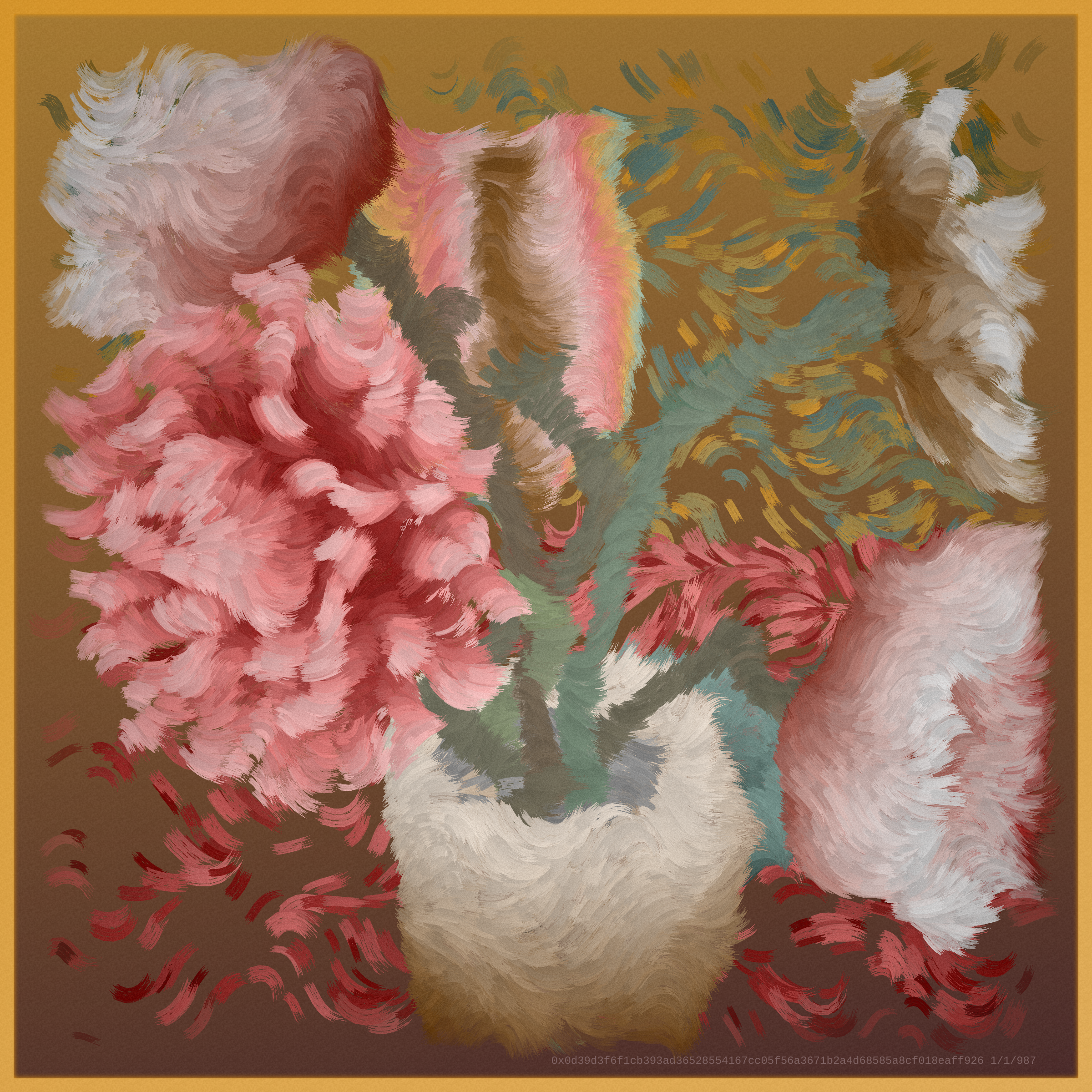 Chimera is a natural progression of still life. It is an old tradition in the very new medium of on-chain generative art, a movement that will have an enormous presence in the future. Chimera simultaneously reaches into the past while exploiting the capabilities of the present and seeks to represent a unique moment in time, a generation of art in between digital and physical realities, encapsulating where we came from and where we are going.