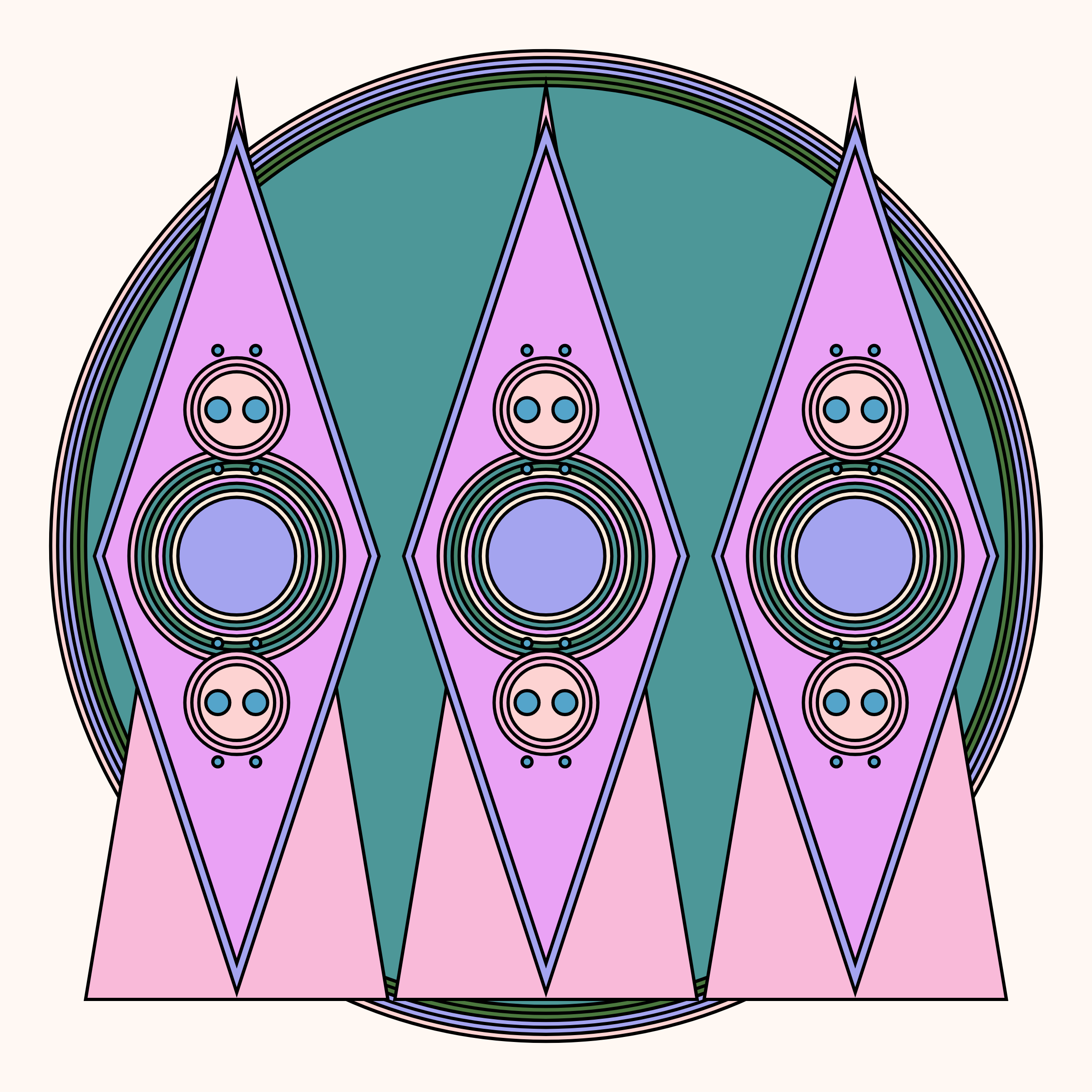 A study in composition using simple shapes and layout rules. When repetitive patterns fail, and the symmetry isn't quite right, the images are strangely evocative. Somewhere between art deco, pop art, and sci-fi.