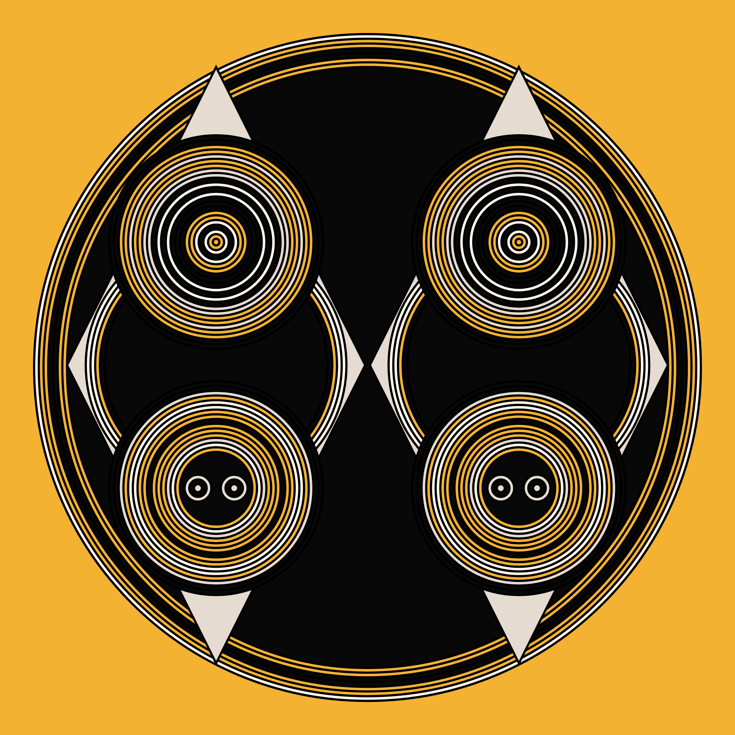 A study in composition using simple shapes and layout rules. When repetitive patterns fail, and the symmetry isn't quite right, the images are strangely evocative. Somewhere between art deco, pop art, and sci-fi.