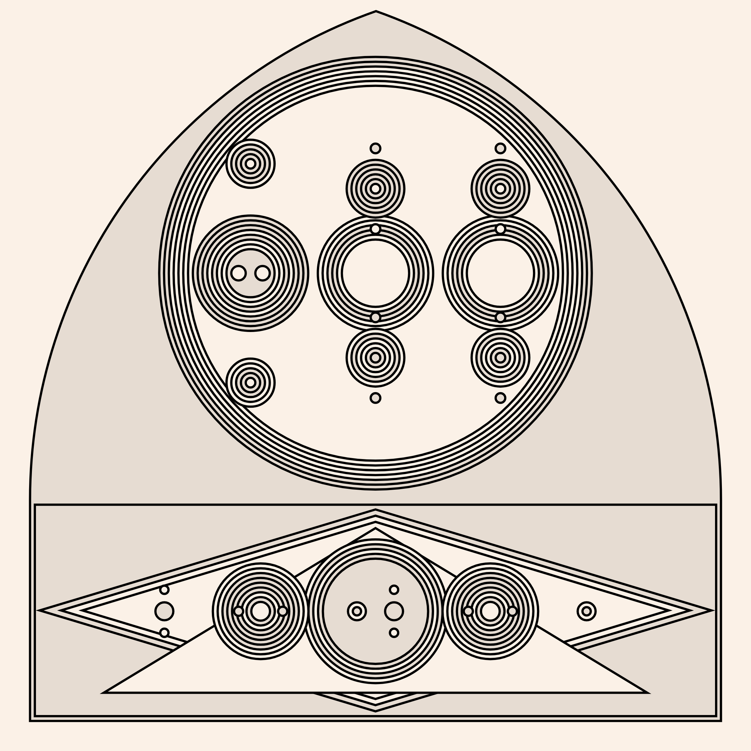A study in composition using simple shapes and layout rules. When repetitive patterns fail, and the symmetry isn't quite right, the images are strangely evocative. Somewhere between art deco, pop art, and sci-fi.