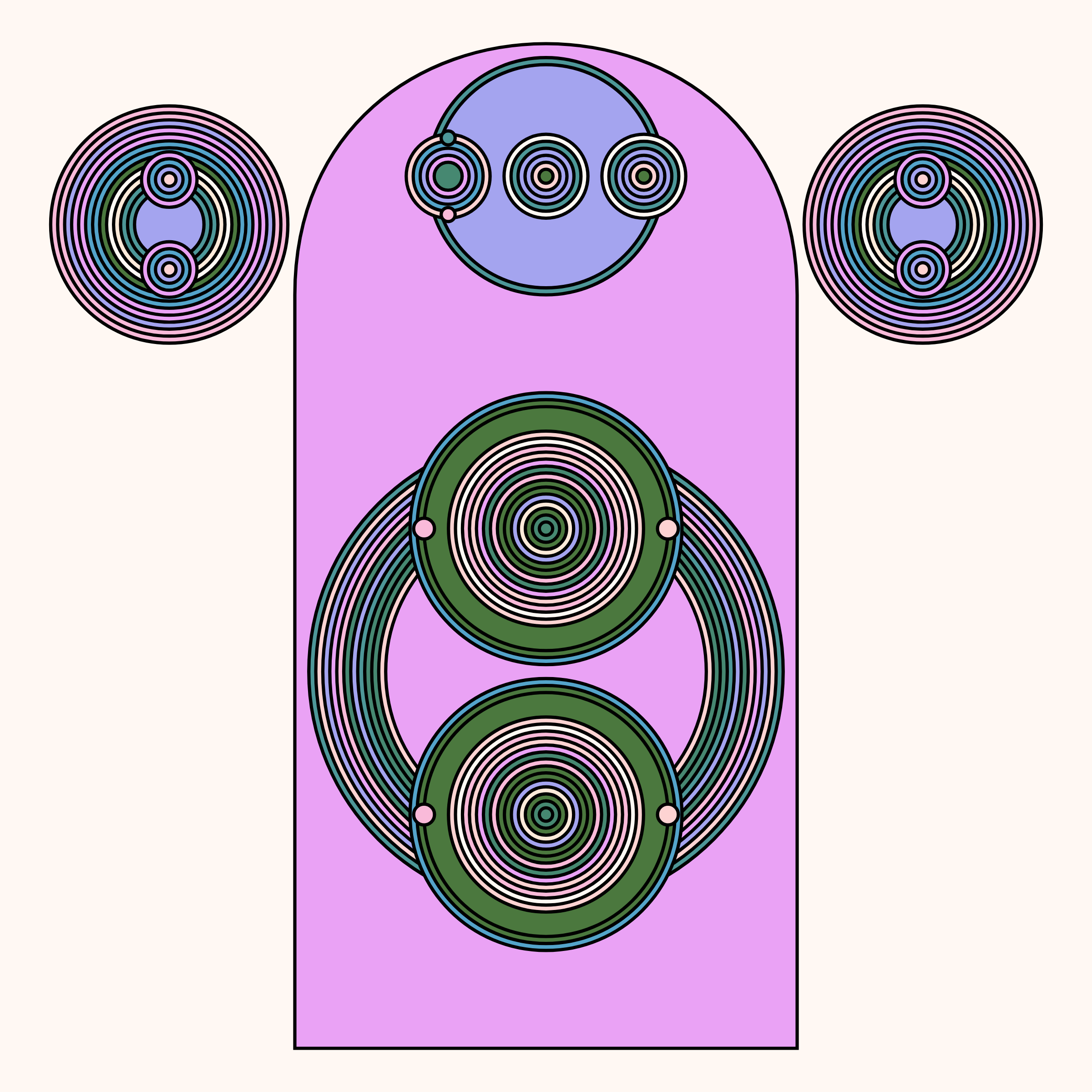 A study in composition using simple shapes and layout rules. When repetitive patterns fail, and the symmetry isn't quite right, the images are strangely evocative. Somewhere between art deco, pop art, and sci-fi.