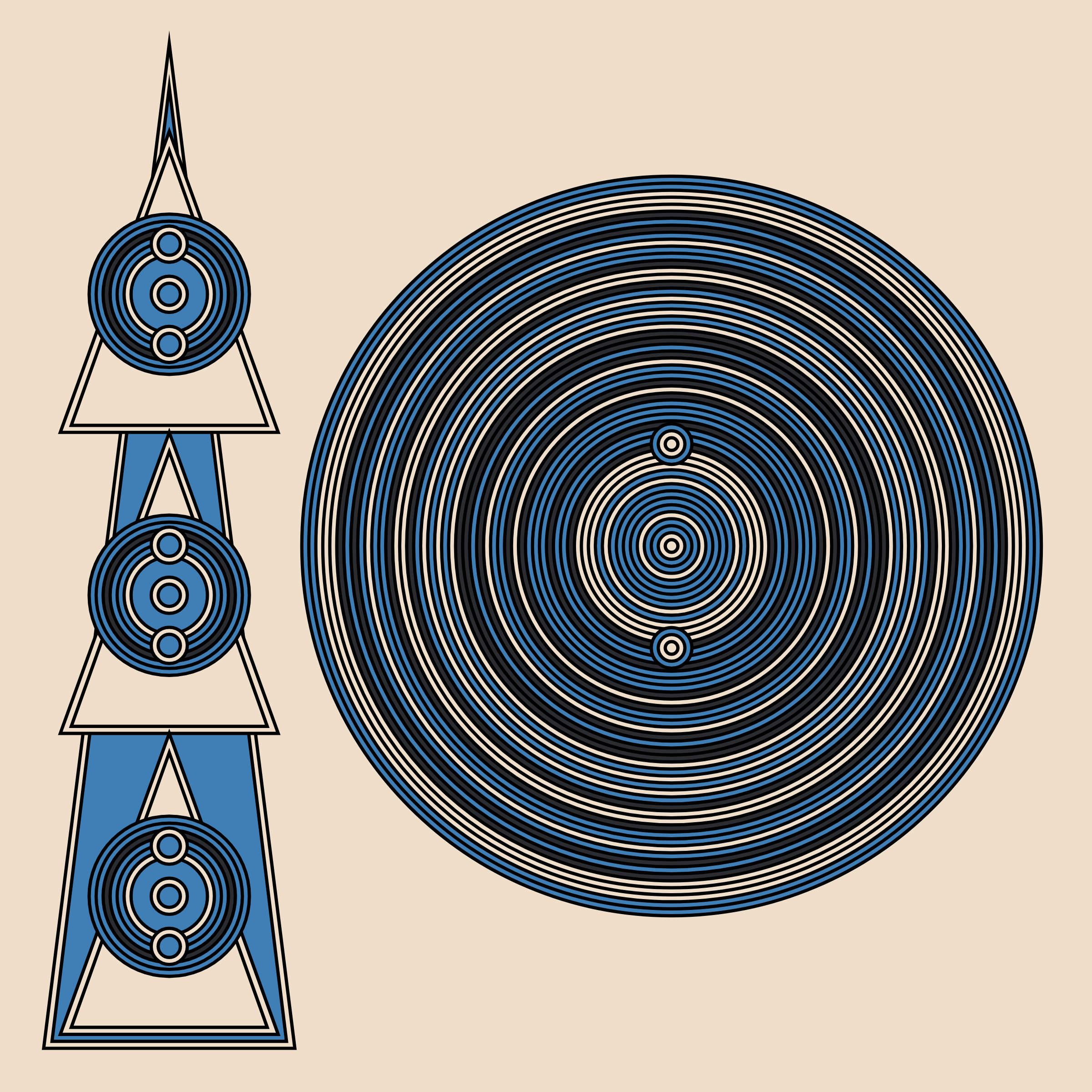 A study in composition using simple shapes and layout rules. When repetitive patterns fail, and the symmetry isn't quite right, the images are strangely evocative. Somewhere between art deco, pop art, and sci-fi.