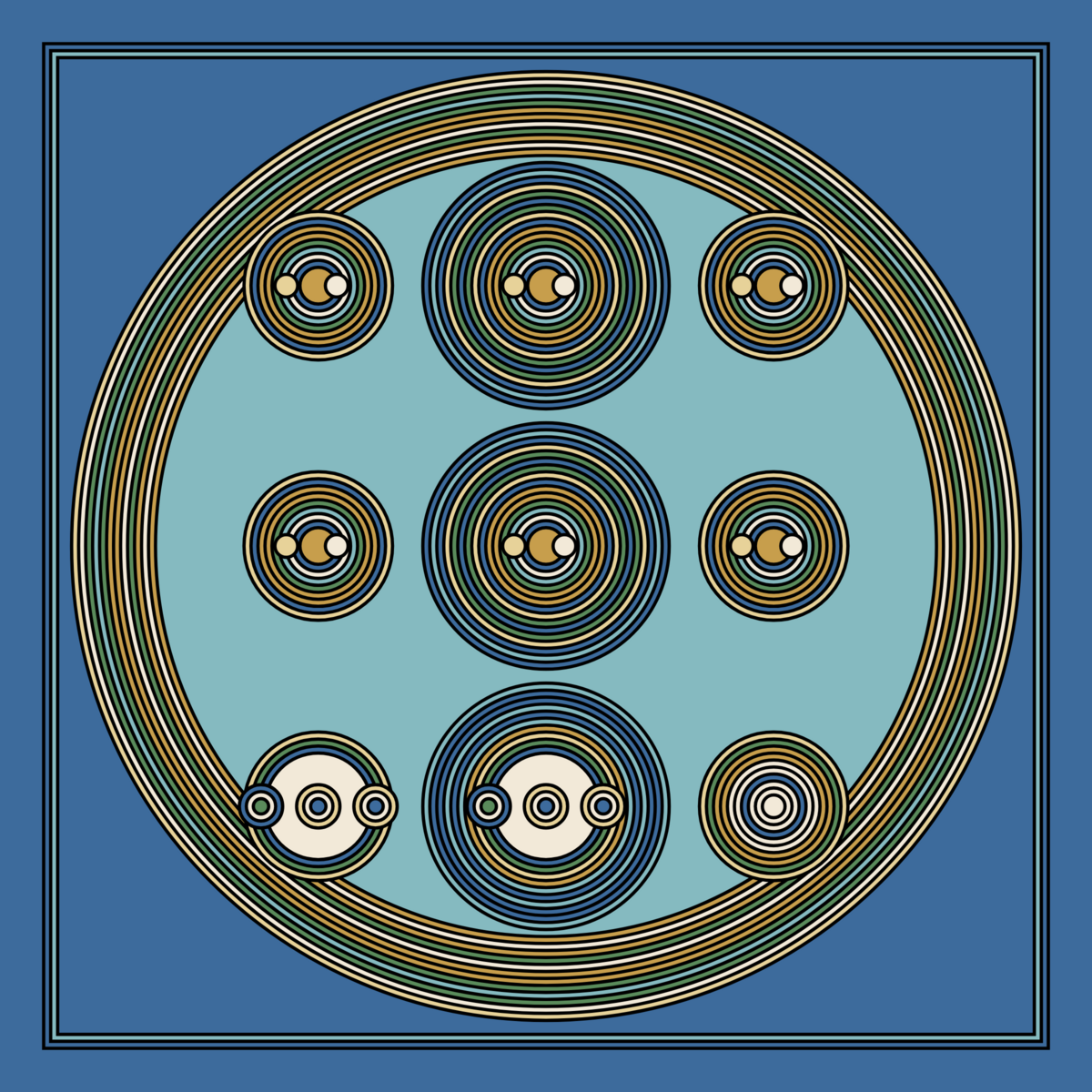 A study in composition using simple shapes and layout rules. When repetitive patterns fail, and the symmetry isn't quite right, the images are strangely evocative. Somewhere between art deco, pop art, and sci-fi.