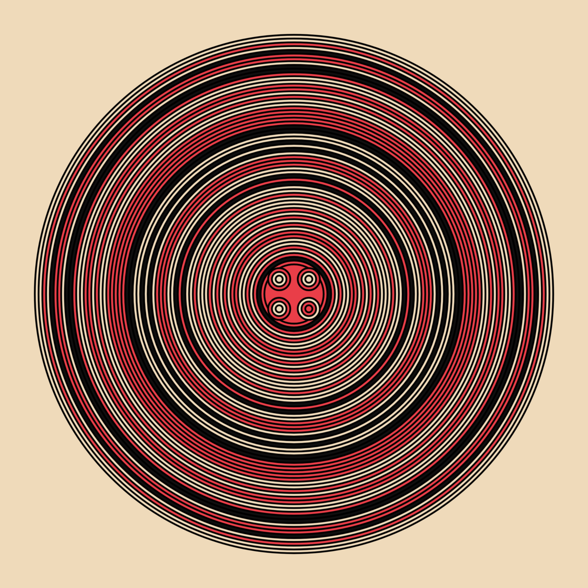 A study in composition using simple shapes and layout rules. When repetitive patterns fail, and the symmetry isn't quite right, the images are strangely evocative. Somewhere between art deco, pop art, and sci-fi.
