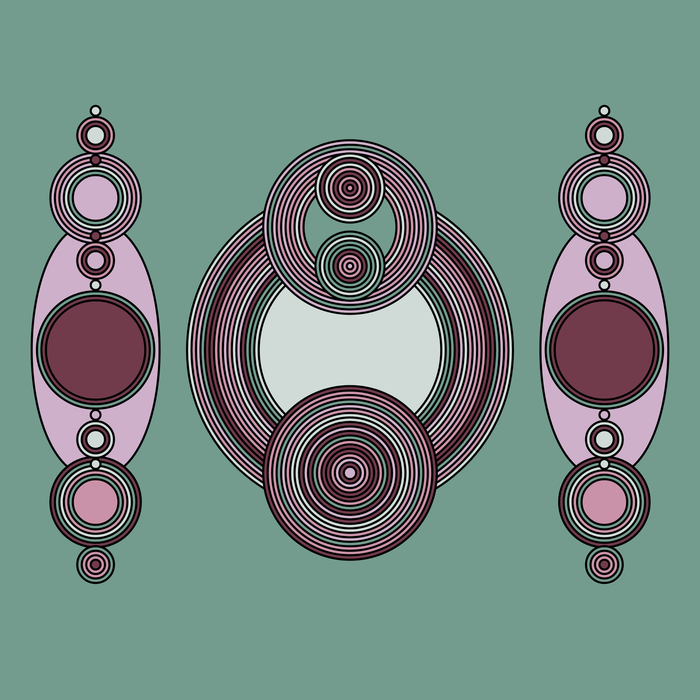 A study in composition using simple shapes and layout rules. When repetitive patterns fail, and the symmetry isn't quite right, the images are strangely evocative. Somewhere between art deco, pop art, and sci-fi.