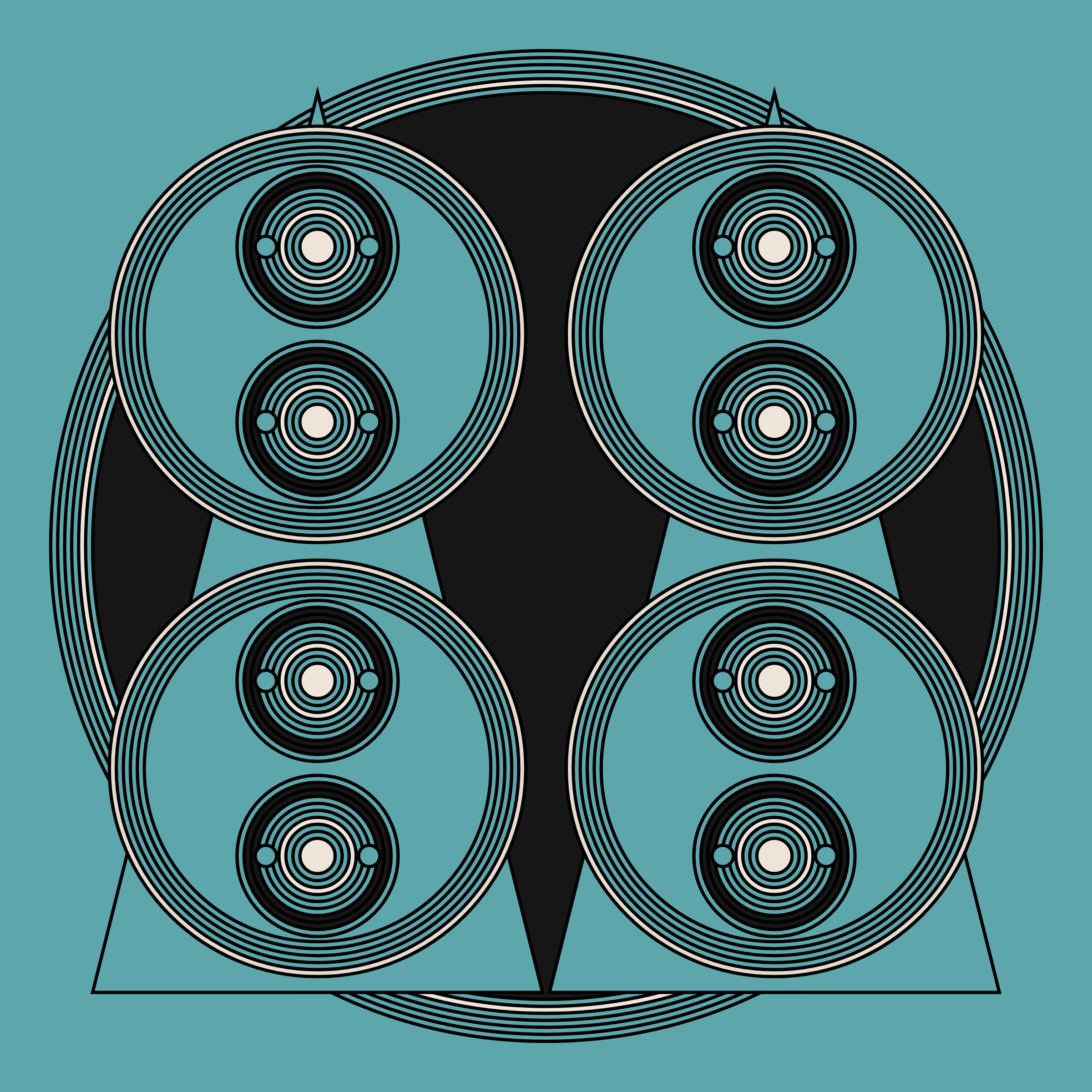 A study in composition using simple shapes and layout rules. When repetitive patterns fail, and the symmetry isn't quite right, the images are strangely evocative. Somewhere between art deco, pop art, and sci-fi.