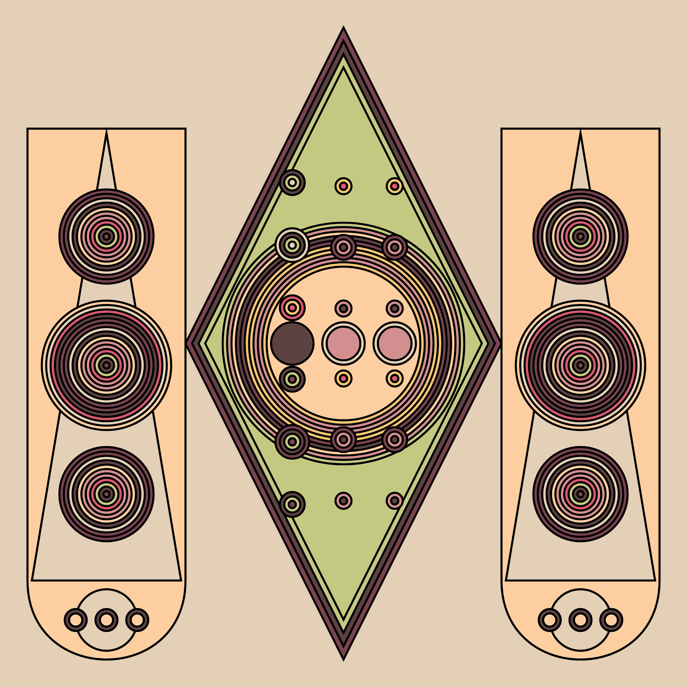 A study in composition using simple shapes and layout rules. When repetitive patterns fail, and the symmetry isn't quite right, the images are strangely evocative. Somewhere between art deco, pop art, and sci-fi.