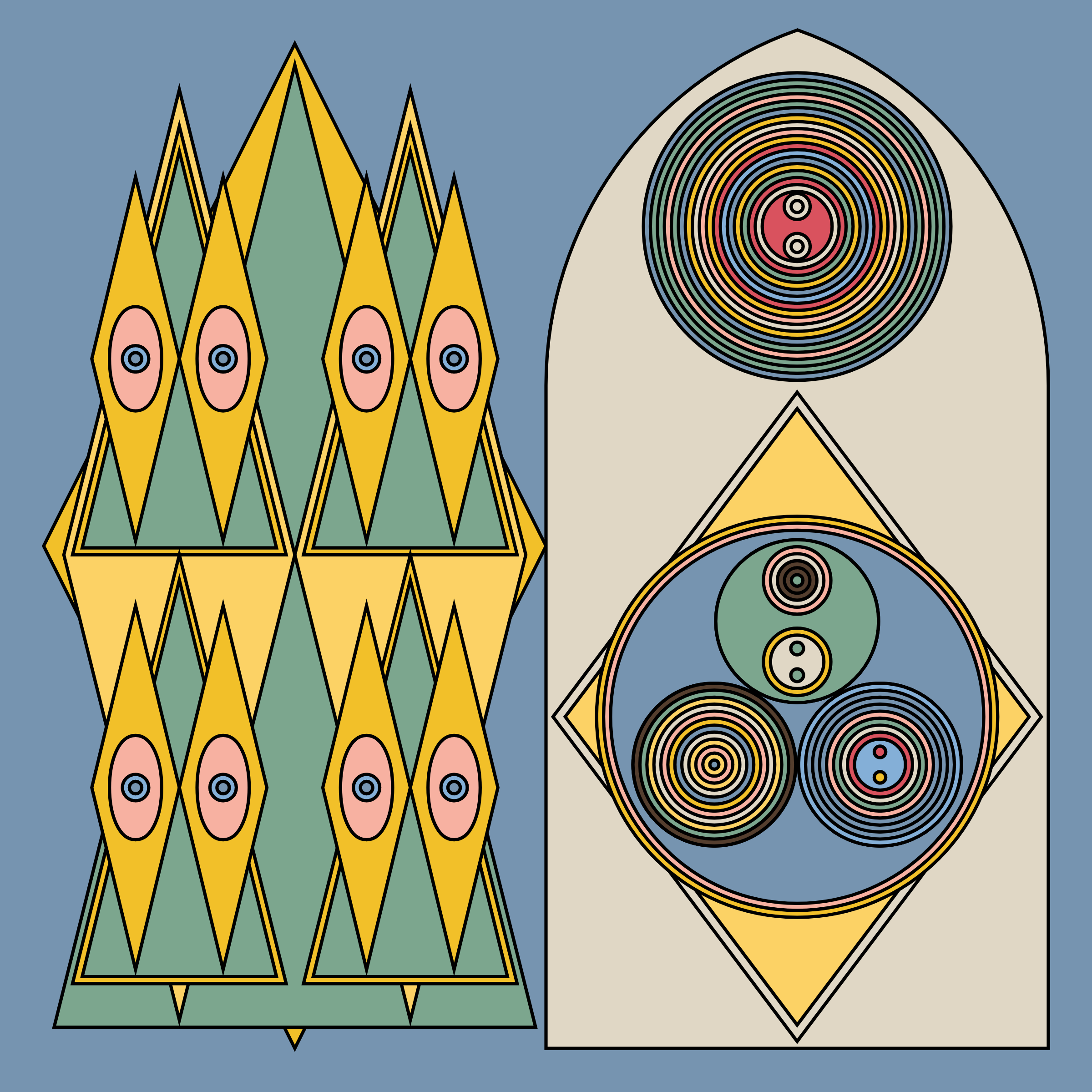 A study in composition using simple shapes and layout rules. When repetitive patterns fail, and the symmetry isn't quite right, the images are strangely evocative. Somewhere between art deco, pop art, and sci-fi.