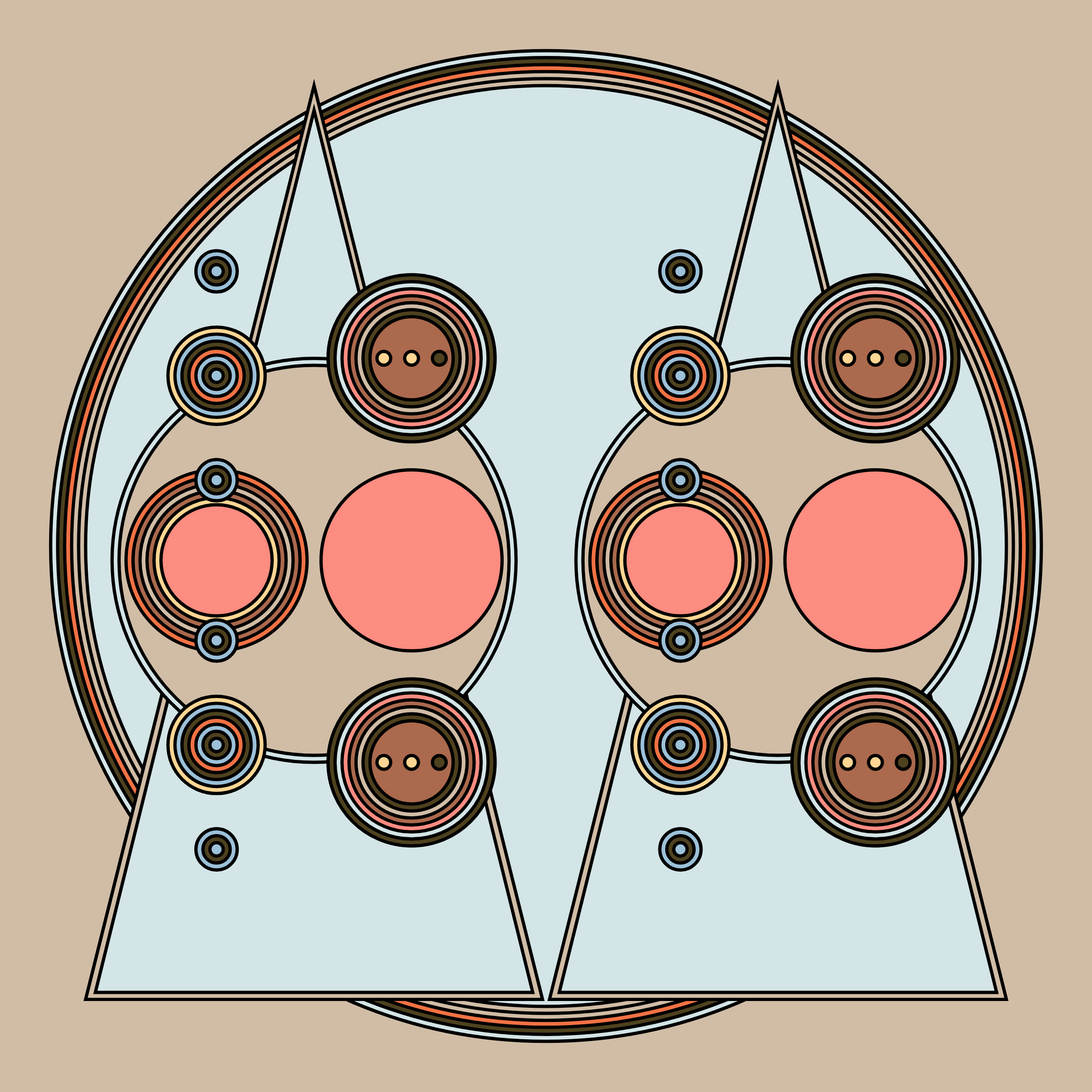 A study in composition using simple shapes and layout rules. When repetitive patterns fail, and the symmetry isn't quite right, the images are strangely evocative. Somewhere between art deco, pop art, and sci-fi.