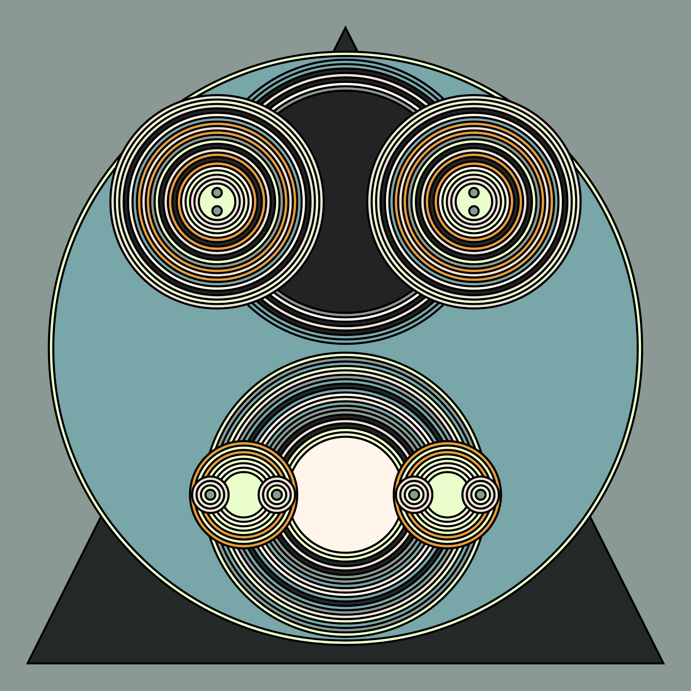 A study in composition using simple shapes and layout rules. When repetitive patterns fail, and the symmetry isn't quite right, the images are strangely evocative. Somewhere between art deco, pop art, and sci-fi.