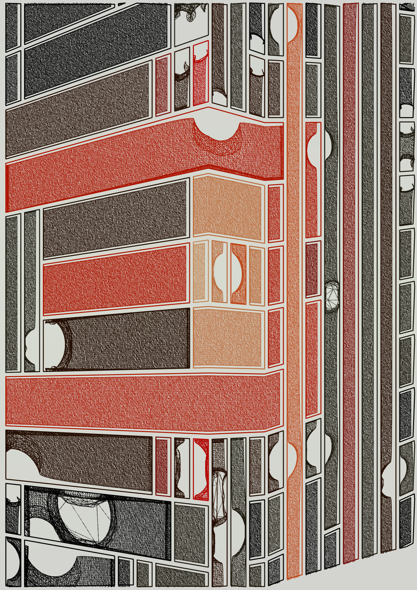 "Edifice" is a series of 976 massive, deteriorating structures built on strange terrain. It is an exploration of buildings being conceptualized, constructed, and eroded away under a wide variety of conditions. Edifice's outputs run the gamut between minimal and maximal, with some showing few large, static blocks of color, and others many small, highly textured and warped shapes. Each image is progressively constructed in front of the viewer's eyes. It is a system full of surprises that I'm excited to share with the world.