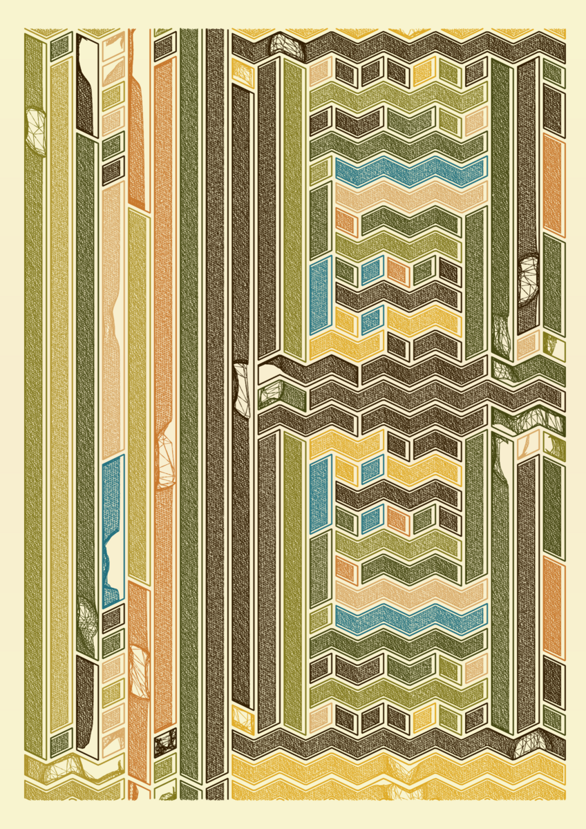 "Edifice" is a series of 976 massive, deteriorating structures built on strange terrain. It is an exploration of buildings being conceptualized, constructed, and eroded away under a wide variety of conditions. Edifice's outputs run the gamut between minimal and maximal, with some showing few large, static blocks of color, and others many small, highly textured and warped shapes. Each image is progressively constructed in front of the viewer's eyes. It is a system full of surprises that I'm excited to share with the world.