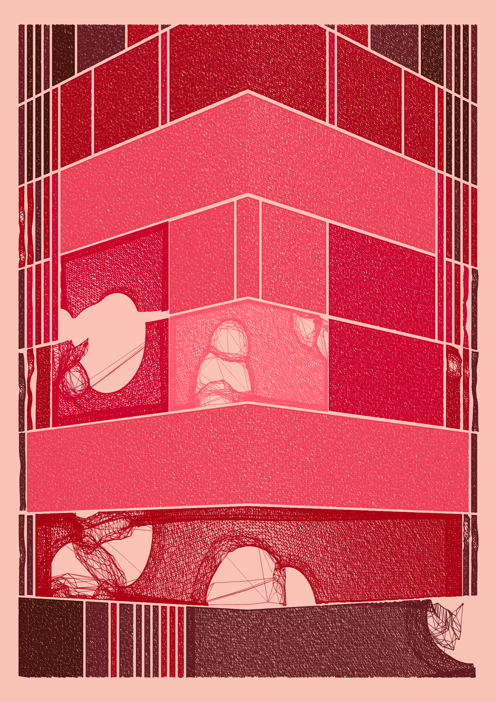 "Edifice" is a series of 976 massive, deteriorating structures built on strange terrain. It is an exploration of buildings being conceptualized, constructed, and eroded away under a wide variety of conditions. Edifice's outputs run the gamut between minimal and maximal, with some showing few large, static blocks of color, and others many small, highly textured and warped shapes. Each image is progressively constructed in front of the viewer's eyes. It is a system full of surprises that I'm excited to share with the world.