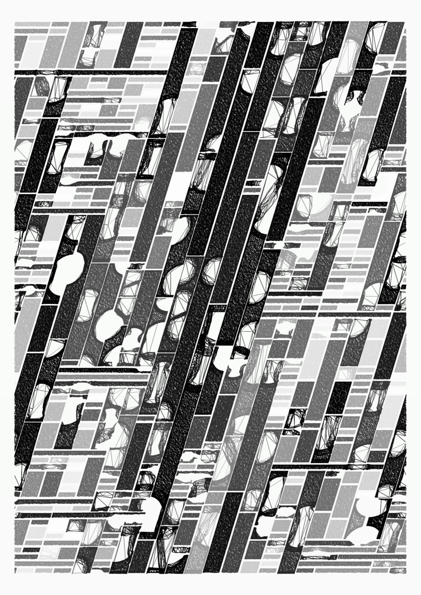 "Edifice" is a series of 976 massive, deteriorating structures built on strange terrain. It is an exploration of buildings being conceptualized, constructed, and eroded away under a wide variety of conditions. Edifice's outputs run the gamut between minimal and maximal, with some showing few large, static blocks of color, and others many small, highly textured and warped shapes. Each image is progressively constructed in front of the viewer's eyes. It is a system full of surprises that I'm excited to share with the world.