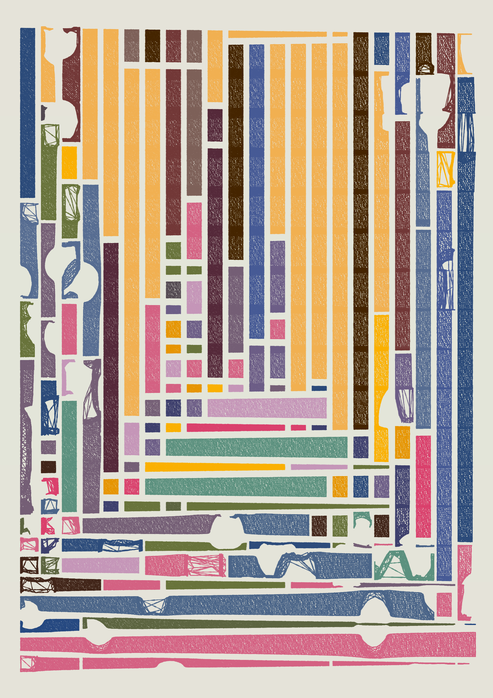 "Edifice" is a series of 976 massive, deteriorating structures built on strange terrain. It is an exploration of buildings being conceptualized, constructed, and eroded away under a wide variety of conditions. Edifice's outputs run the gamut between minimal and maximal, with some showing few large, static blocks of color, and others many small, highly textured and warped shapes. Each image is progressively constructed in front of the viewer's eyes. It is a system full of surprises that I'm excited to share with the world.