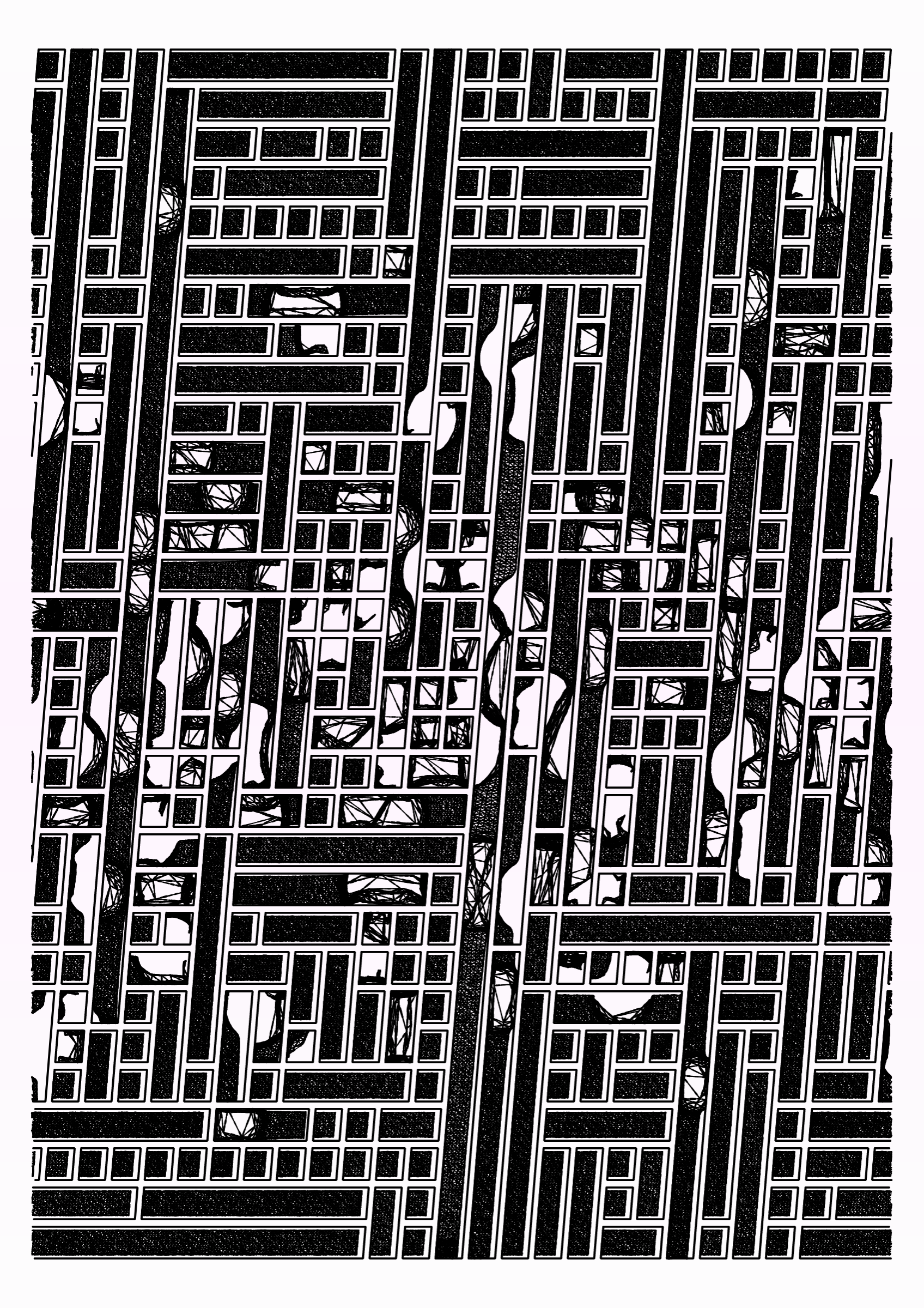 "Edifice" is a series of 976 massive, deteriorating structures built on strange terrain. It is an exploration of buildings being conceptualized, constructed, and eroded away under a wide variety of conditions. Edifice's outputs run the gamut between minimal and maximal, with some showing few large, static blocks of color, and others many small, highly textured and warped shapes. Each image is progressively constructed in front of the viewer's eyes. It is a system full of surprises that I'm excited to share with the world.