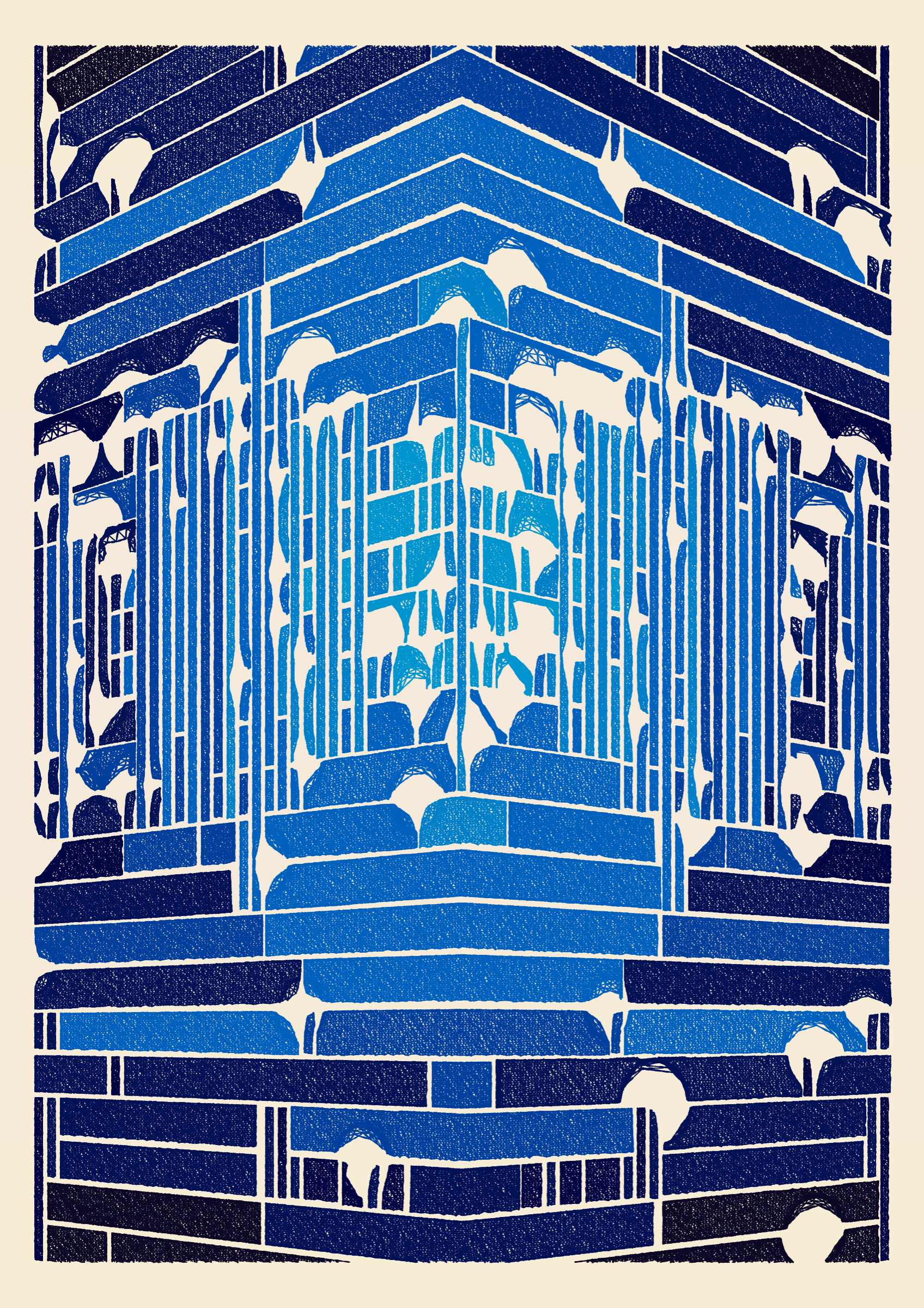 "Edifice" is a series of 976 massive, deteriorating structures built on strange terrain. It is an exploration of buildings being conceptualized, constructed, and eroded away under a wide variety of conditions. Edifice's outputs run the gamut between minimal and maximal, with some showing few large, static blocks of color, and others many small, highly textured and warped shapes. Each image is progressively constructed in front of the viewer's eyes. It is a system full of surprises that I'm excited to share with the world.